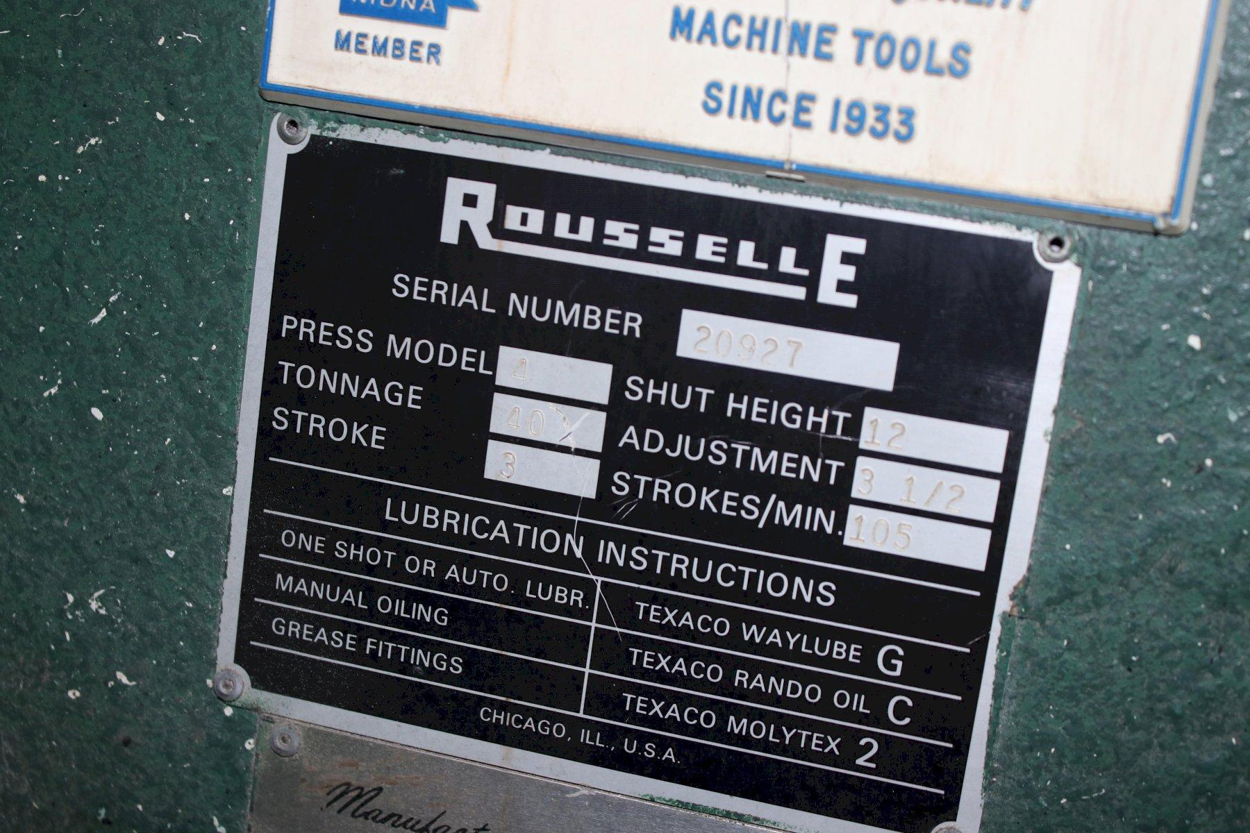 40 TON ROUSSELLE FLYWHEEL OBI PRESS: STOCK #75796