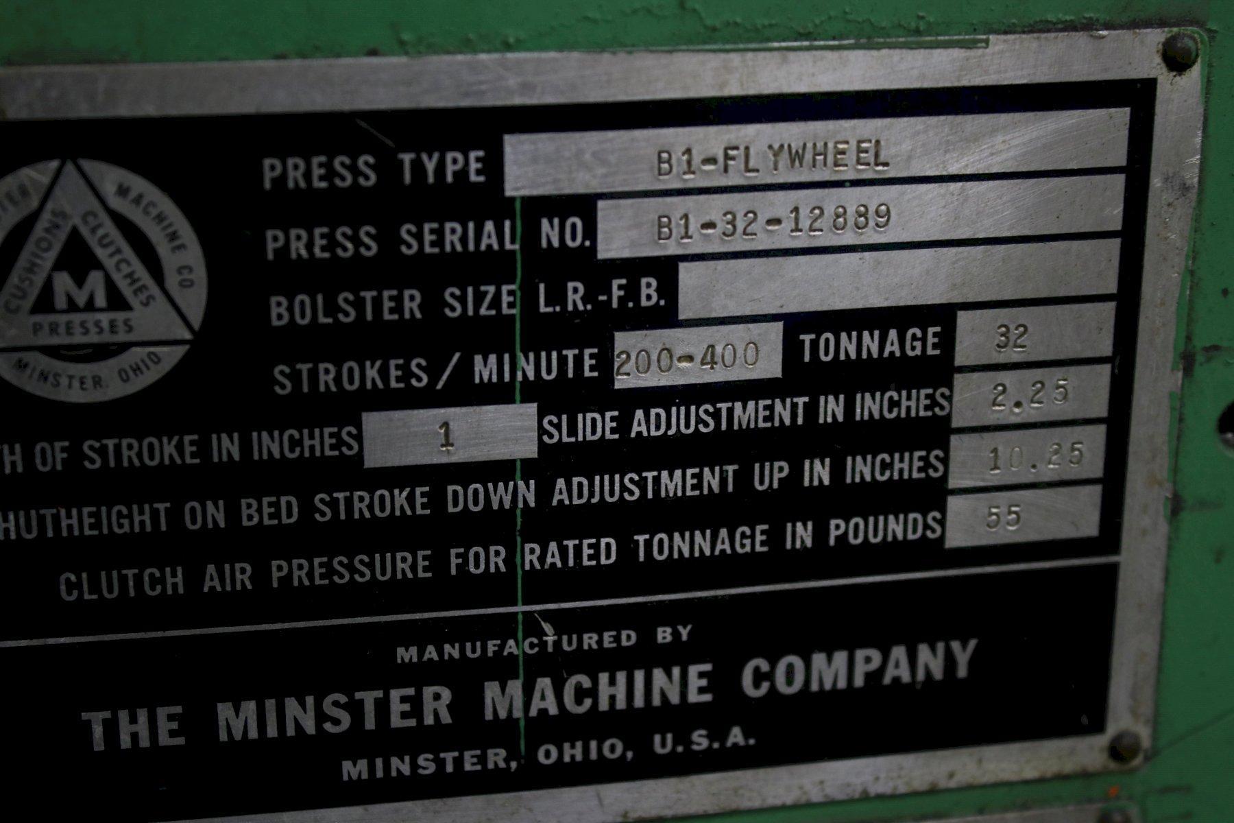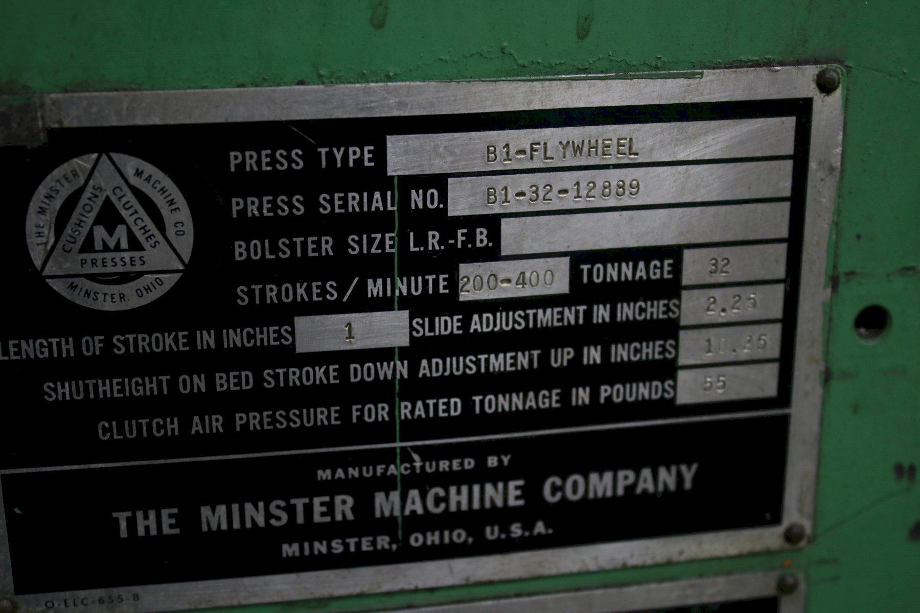 32 TON MINSTER GAP PRESS MODEL #B-32 STOCK #74064
