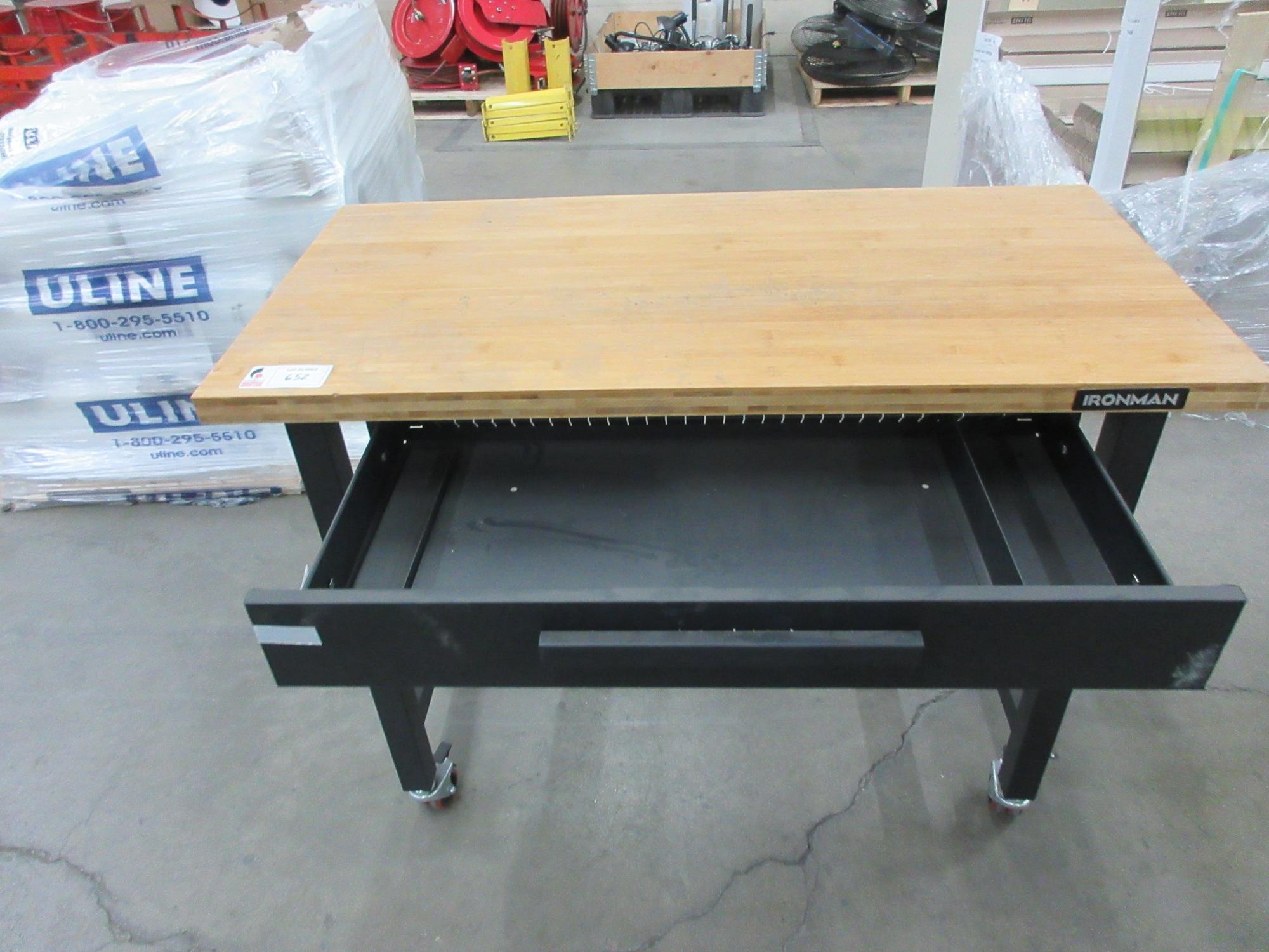 Lot 652: Ironman Rolling Work Bench, Metal Legs with Butcher Block Top and Single Drawer