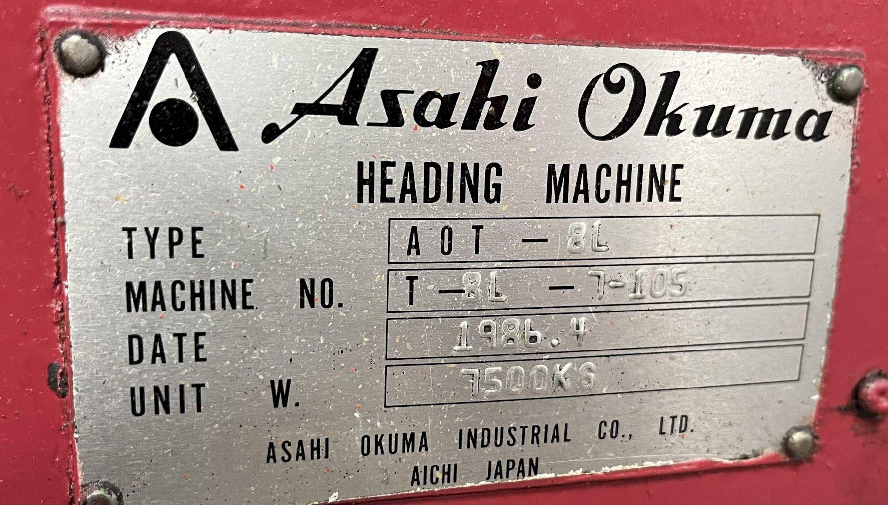 8mm (5/16") Asahi Okuma Model AOT-8L Long Stroke 2 Die 2 Blow Cold Header