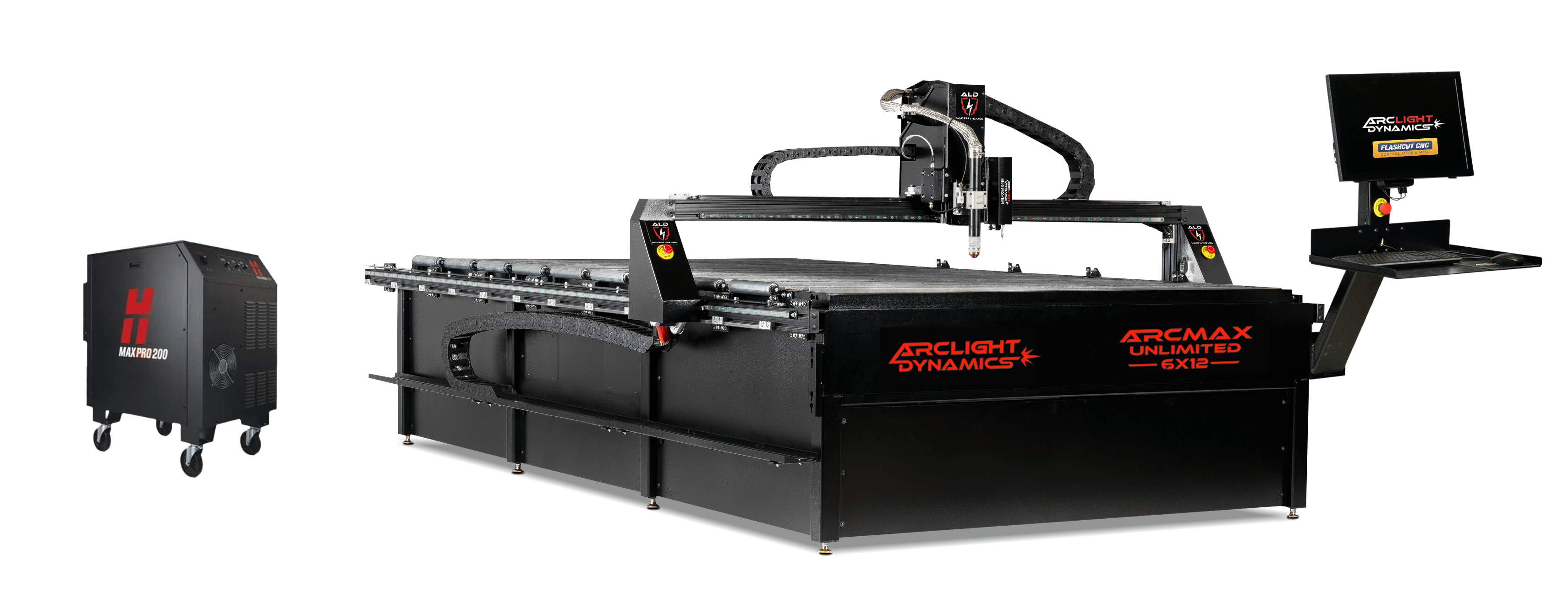 CNC Plasma Cutting System with Windows, Mini Computer Control, FlashCut Pro Integrated CAD / CAM / CNC, Integrated Stingray Torch Height Control, Magnetic Torch Mount, 7” Gantry Clearance, Available in 4’ X 8’, 5’ X 10 & 6’ X 12’ Table Sizes.