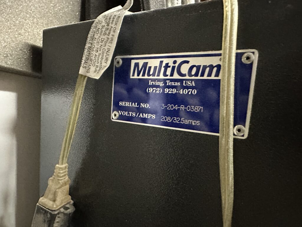 Multicam Pendant Control, Multicam Vacuum Pump, 8 Capacity Bar Style ATC, Vacuum Table, Tool Height Sensor, Auto Mister, Colombo Spindle