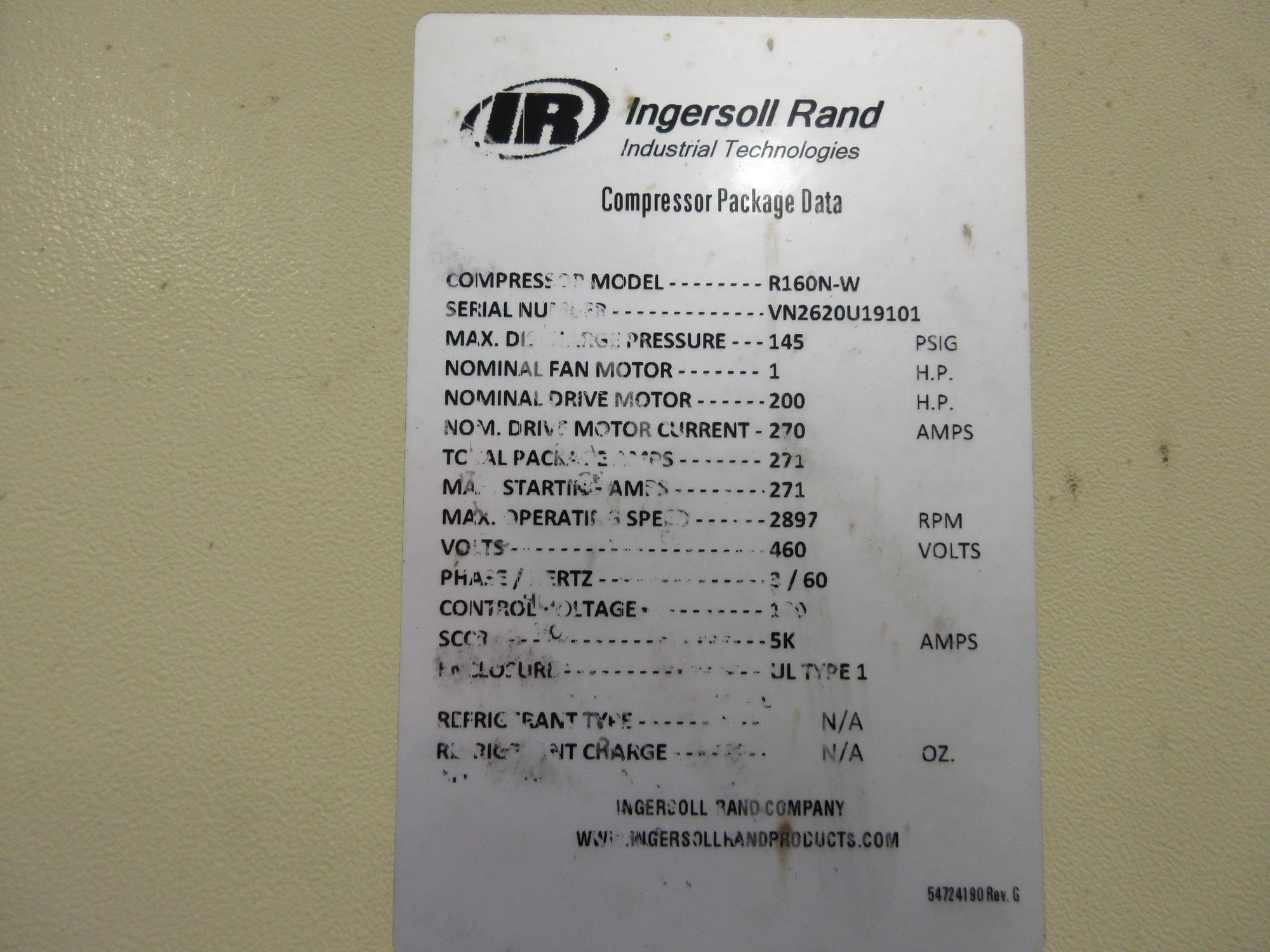 Ingersoll Rand R160N-W Rotary Screw Air Compressor.