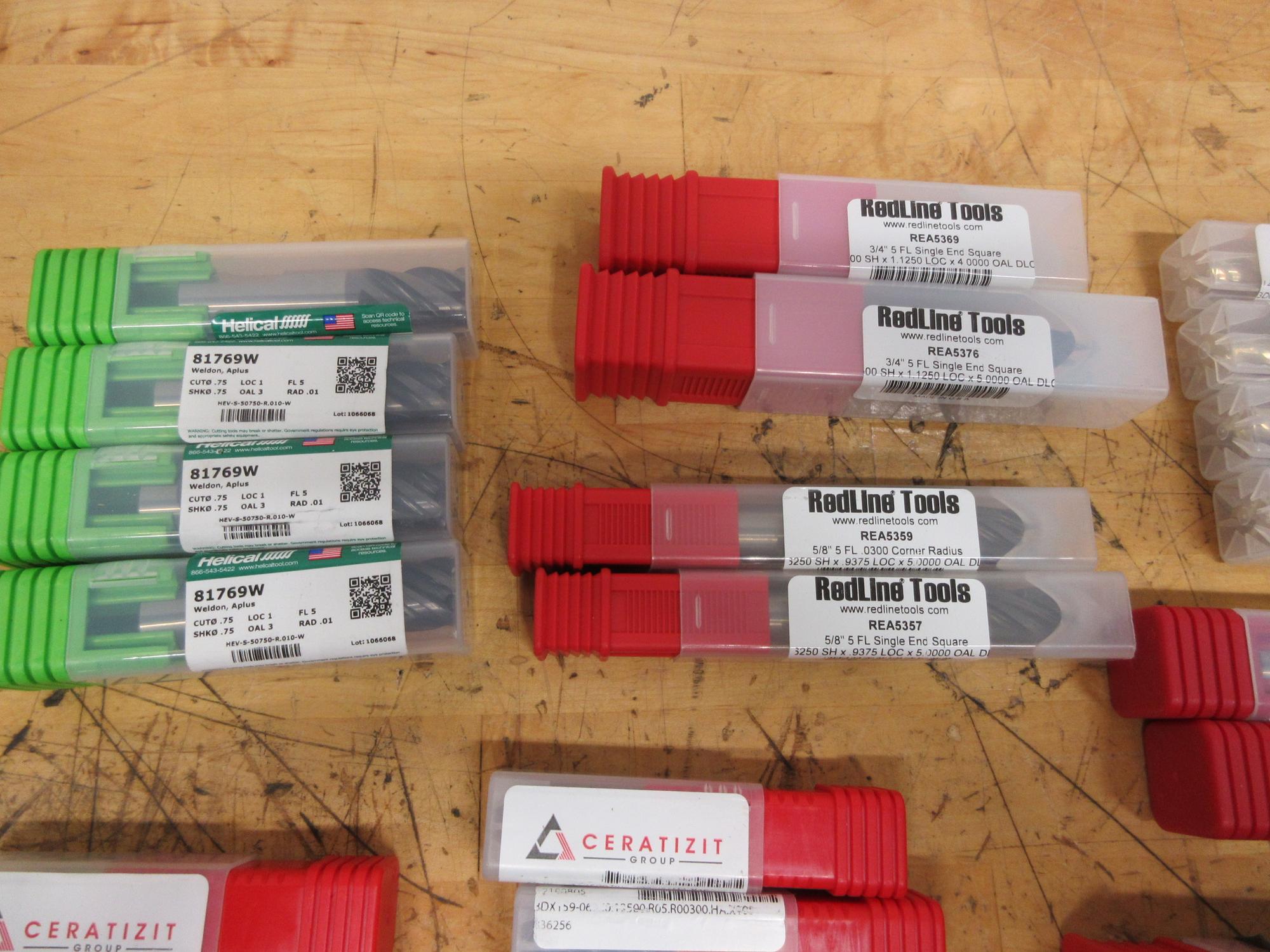Lot 47: Carbide End Mills, NIB 5/8"-3/4" Helical, Redline, Fullerton, Ceratizit Brands