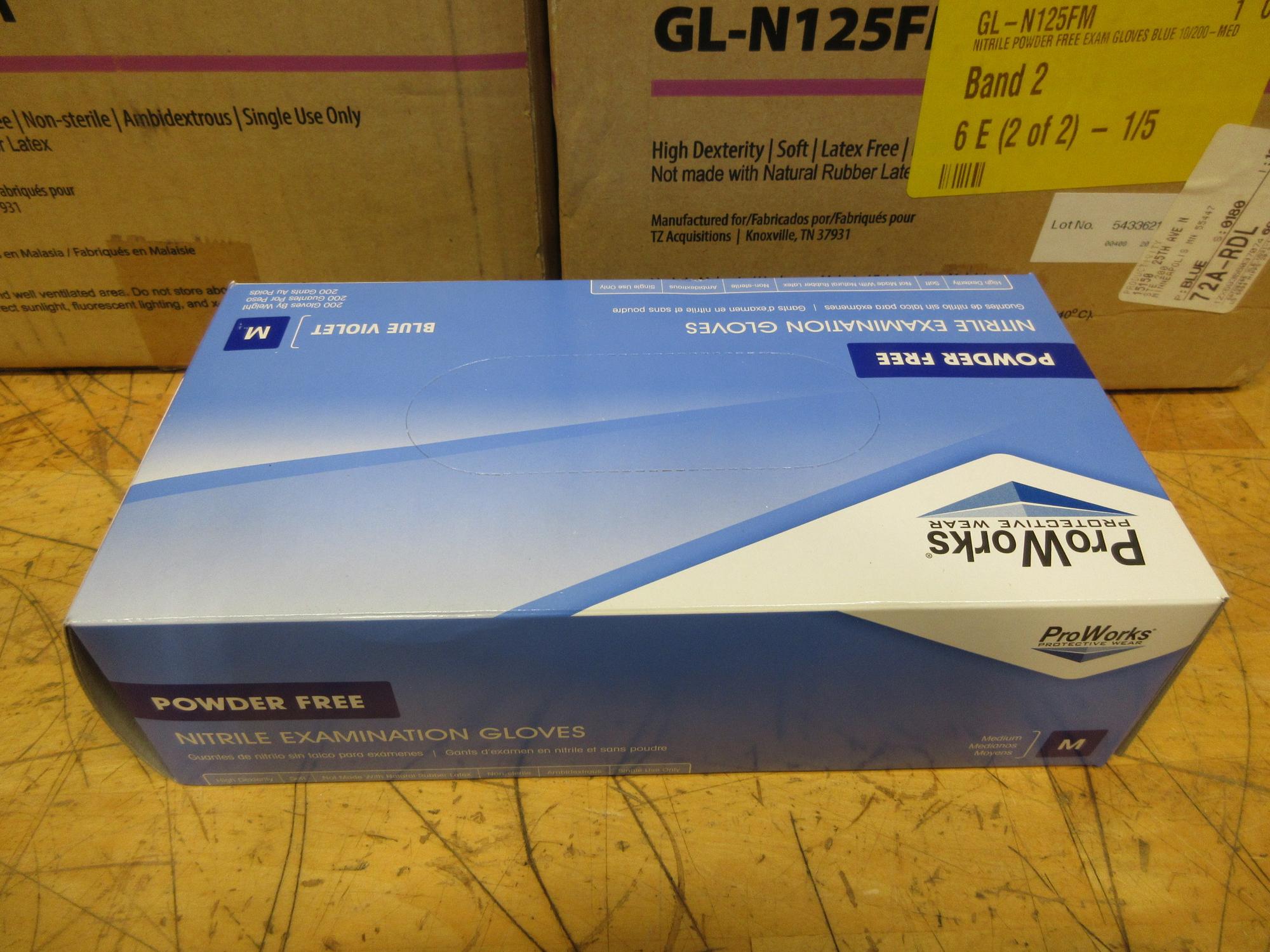 Lot 56: Proworks GL-N125FM Nitrile Exam Gloves, Size Medium, (2) Boxes Full, (10) Packs per Box