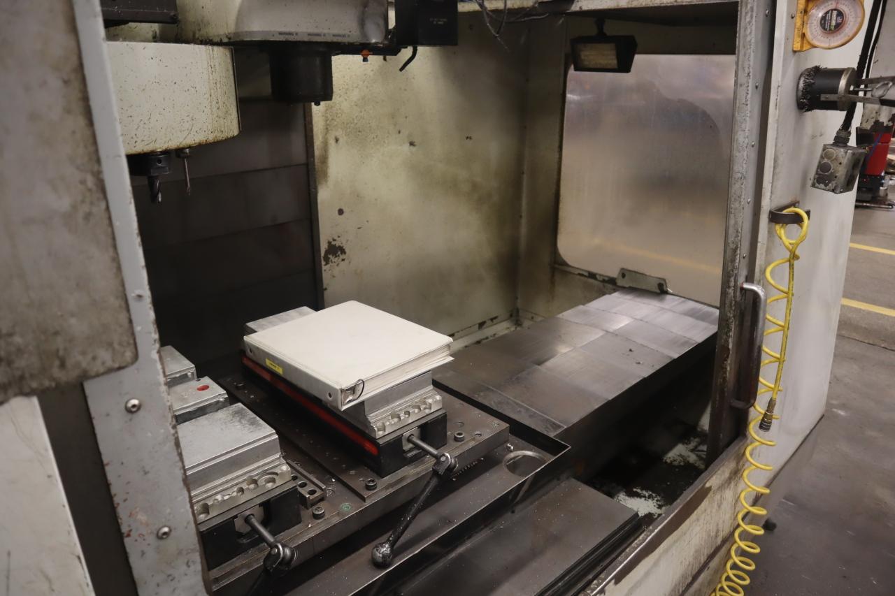 Equipped With: Haas CNC Control, 20 Station Carousel Tool Changer, 7500 RPM Spindle, CAT 40 Spindle Taper, Chip Auger, Programmabe Coolant Nozzle, Coolant Pump and Tank with Oil Skimmer, CAT 40 Toolholders, Haas Floodlight, Extra Haas Toolchanger, 4 x Vises on Fixture Plate