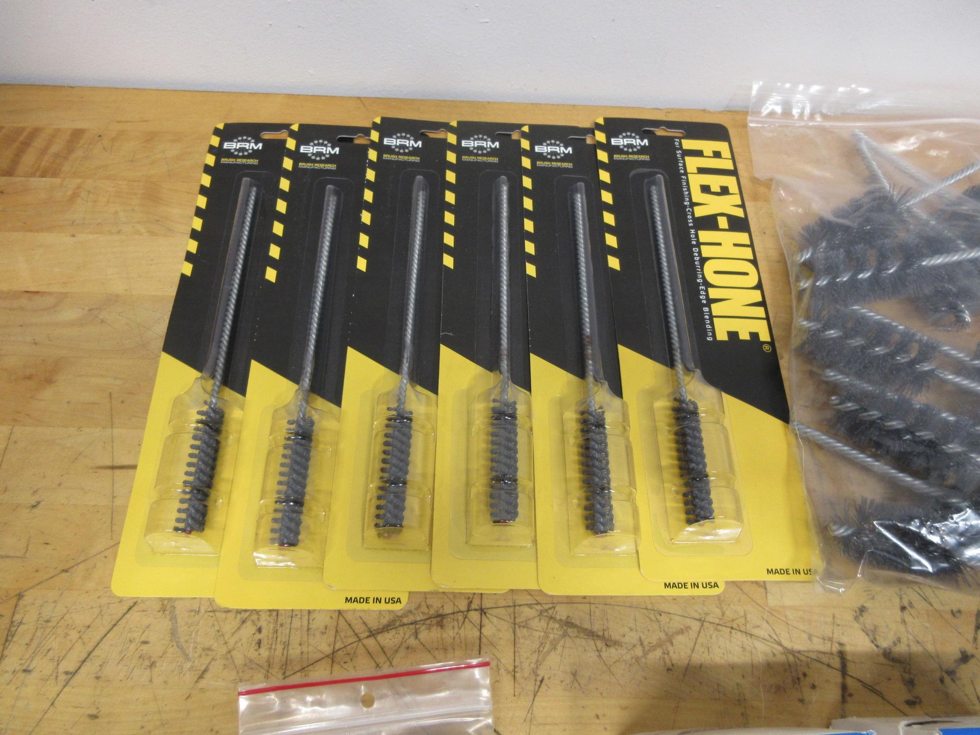 Lot 57: Flex Hone 12MM Brushes, Assorted Wire Tube Brushes, Assorted 1/4" Shank Flap Disks