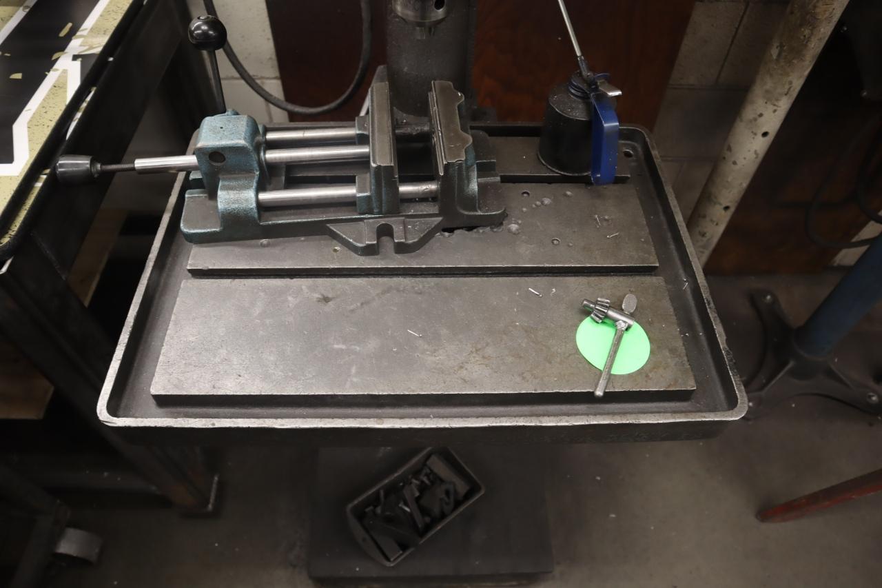 Equipped With: Automatic Downfeedm 21.25"x14.25" Table, Jacobs Ball Bearing Super Chuck 3/4", 6" Drill Vise, 85-1460 RPM