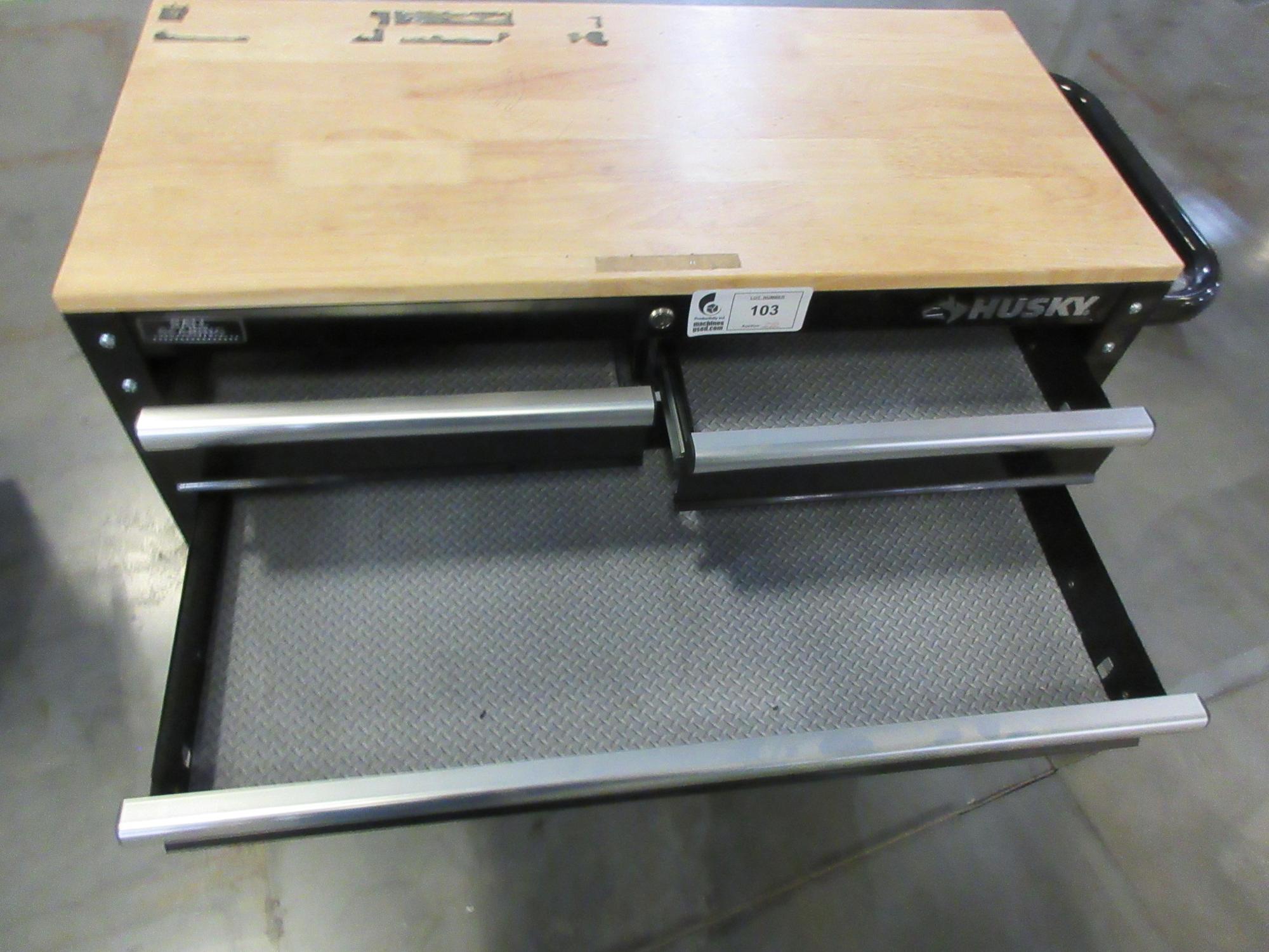Lot 103: Husky 3-Drawer Rolling Tool Chest with Butcher Block Top