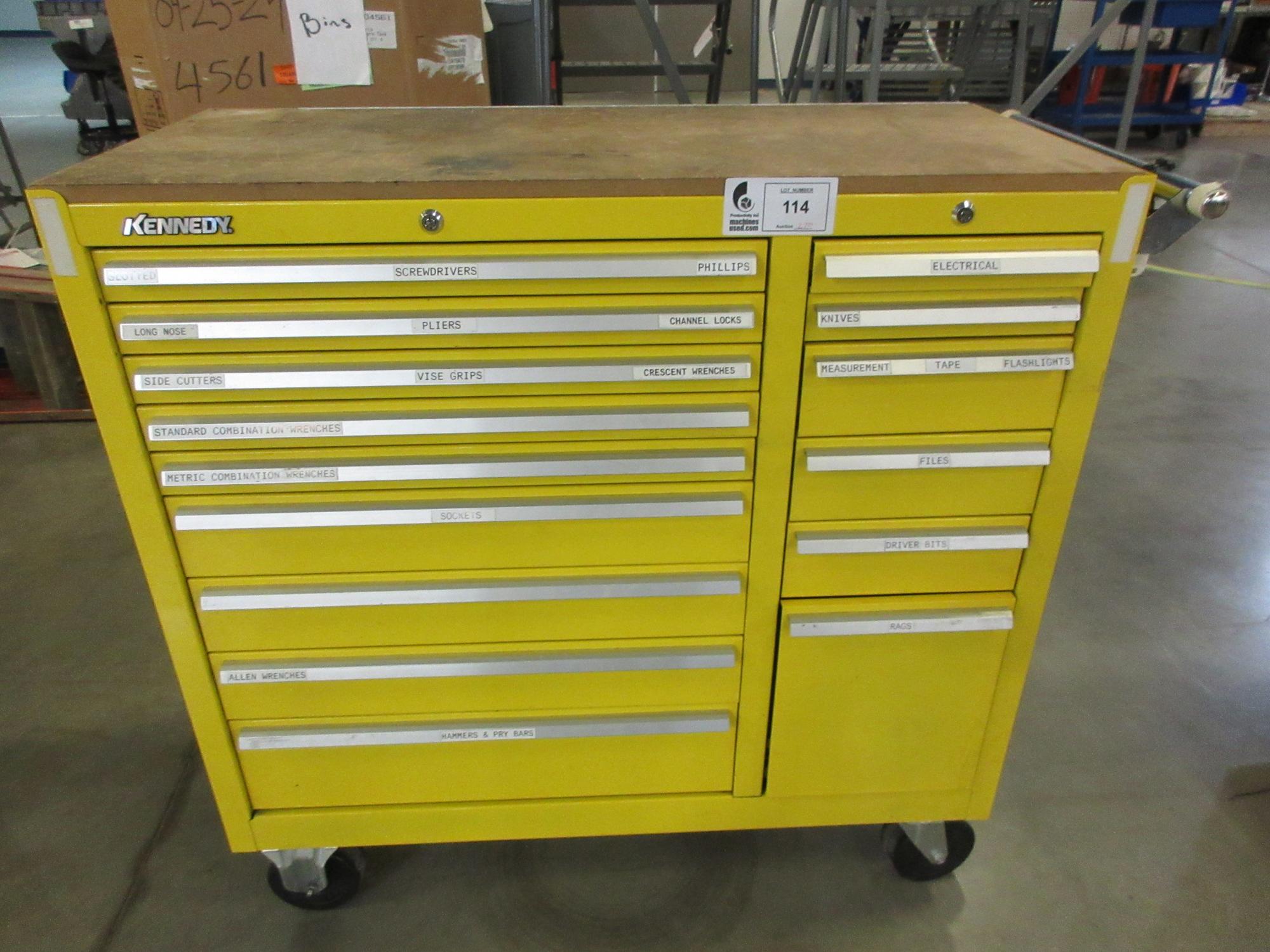 Lot 114: Kennedy 15-Drawer Locking Tool Chest, Portable with Keys and Contents