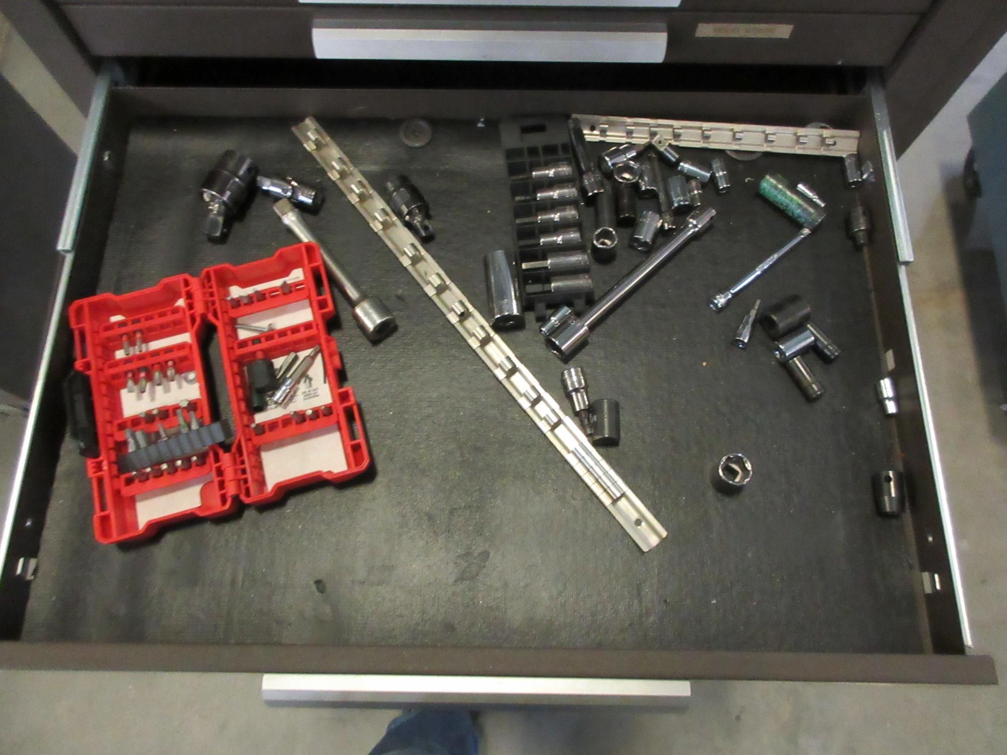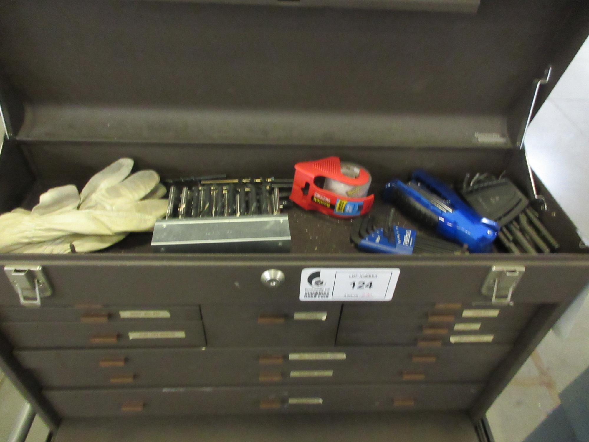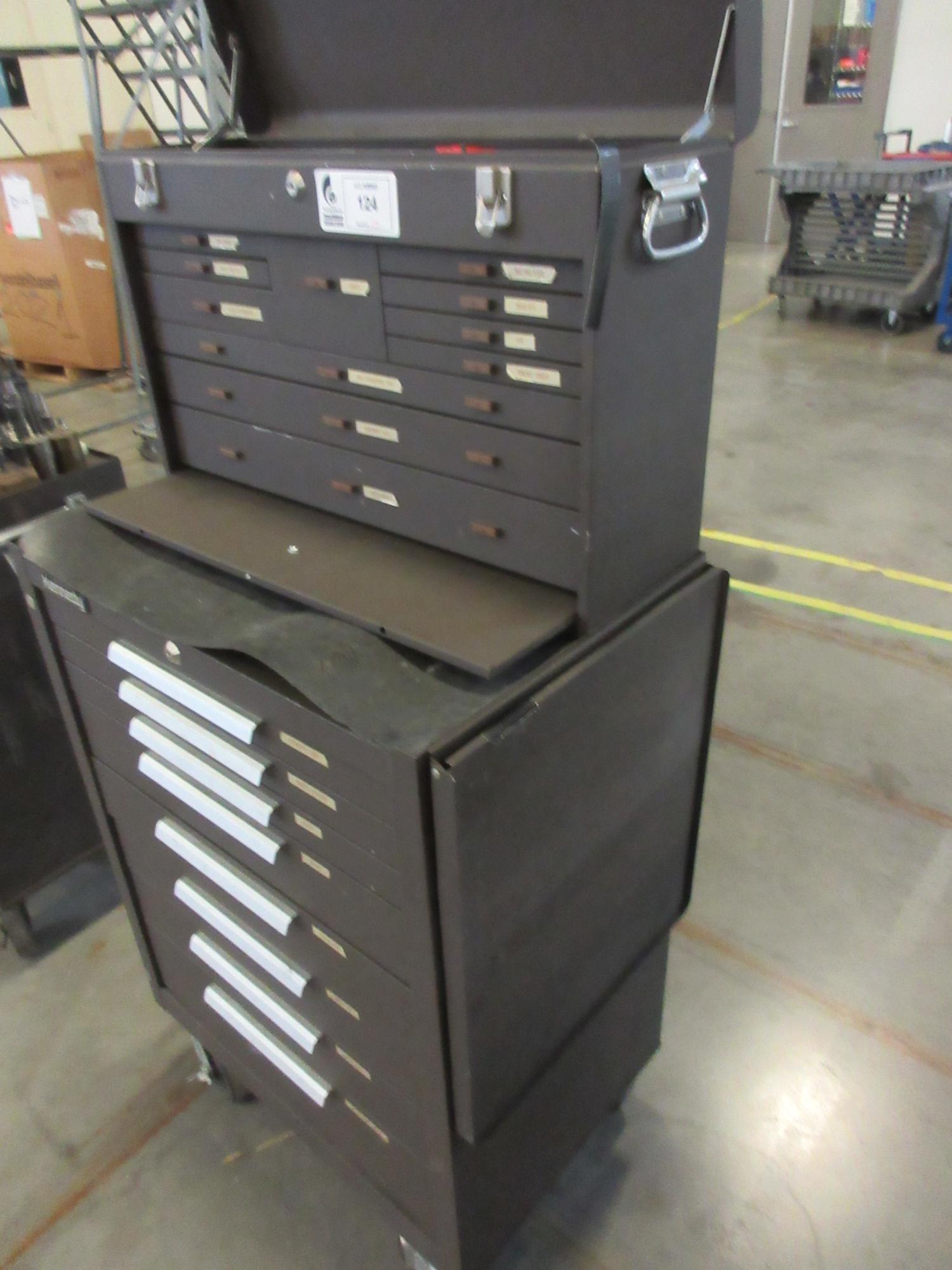 Lot 124: Kennedy 19-Drawer Rolling Tool Chest with Top and Bottom Units, Side Shelf and Contents