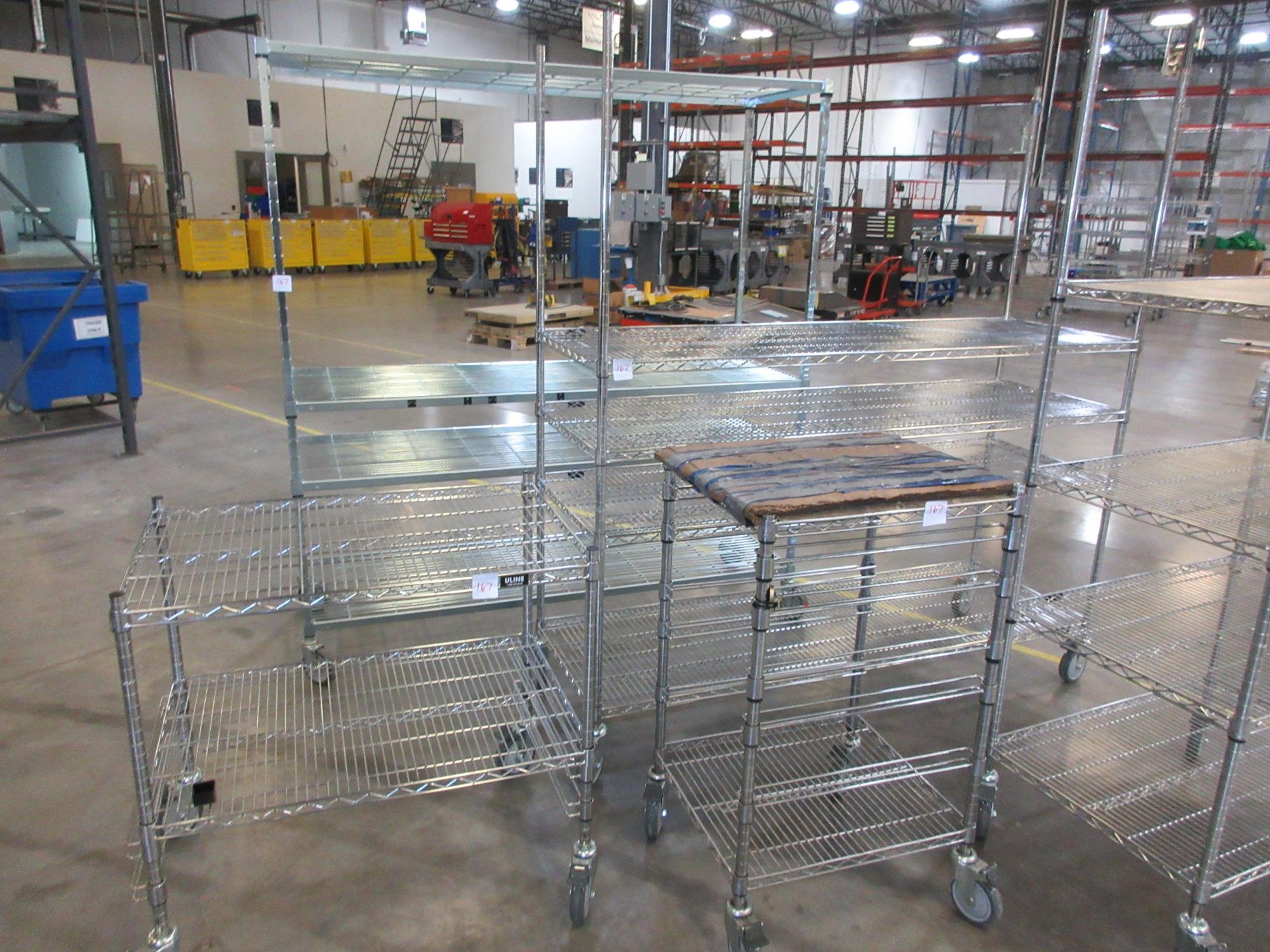 Lot 167: Uline Rolling Metal Wire Carts and assorted other brands, (5) Total
