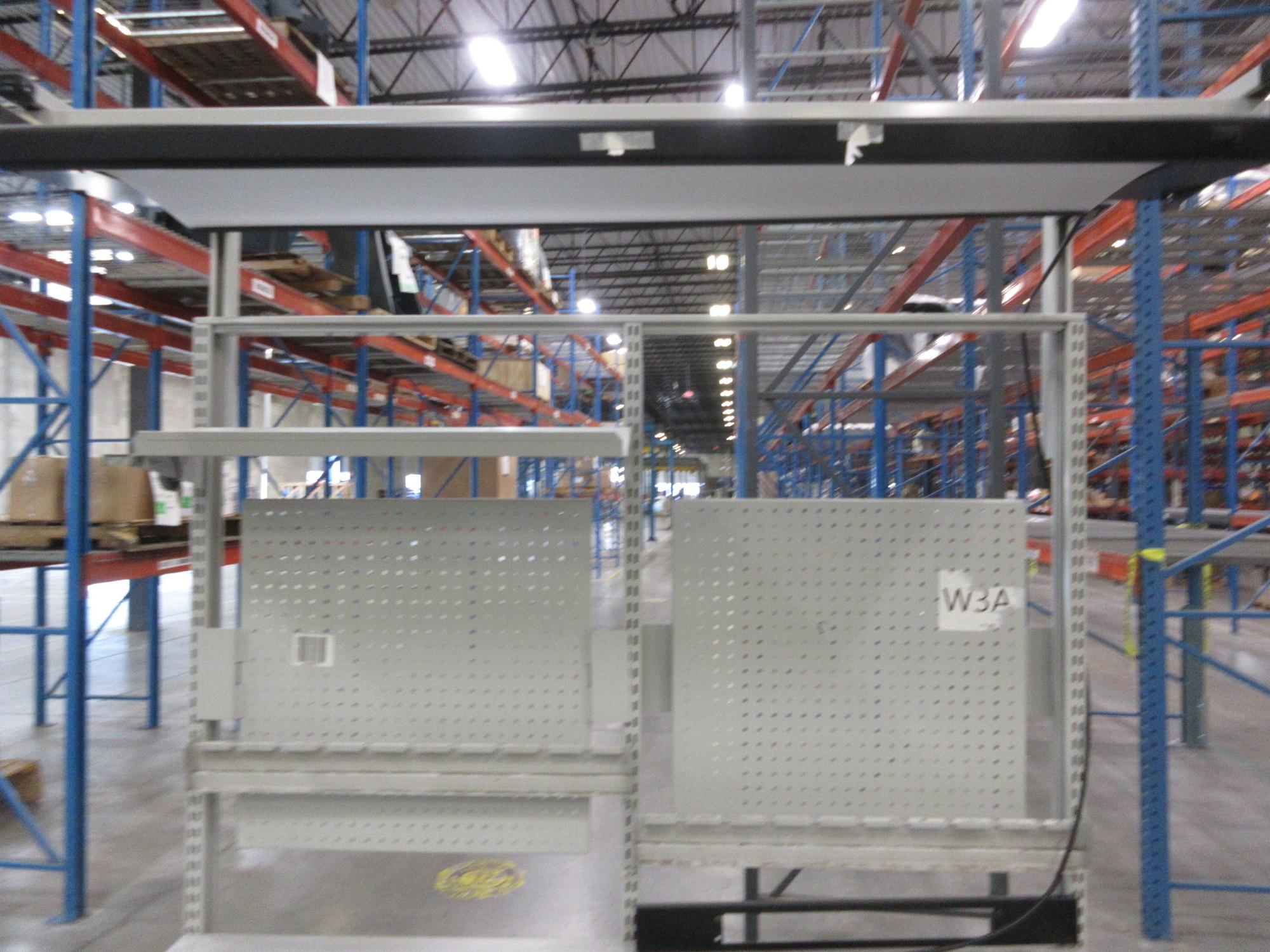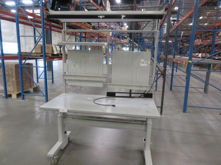 Lot 189: BostonTec Heavy Duty Metal Work Bench with Overhead Light and Adjustable Shelves, Portable