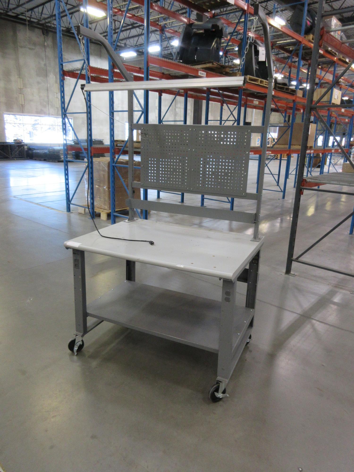 Lot 191: Uline Heavy Duty Metal Bench with Lower Shelf and Overhead Light