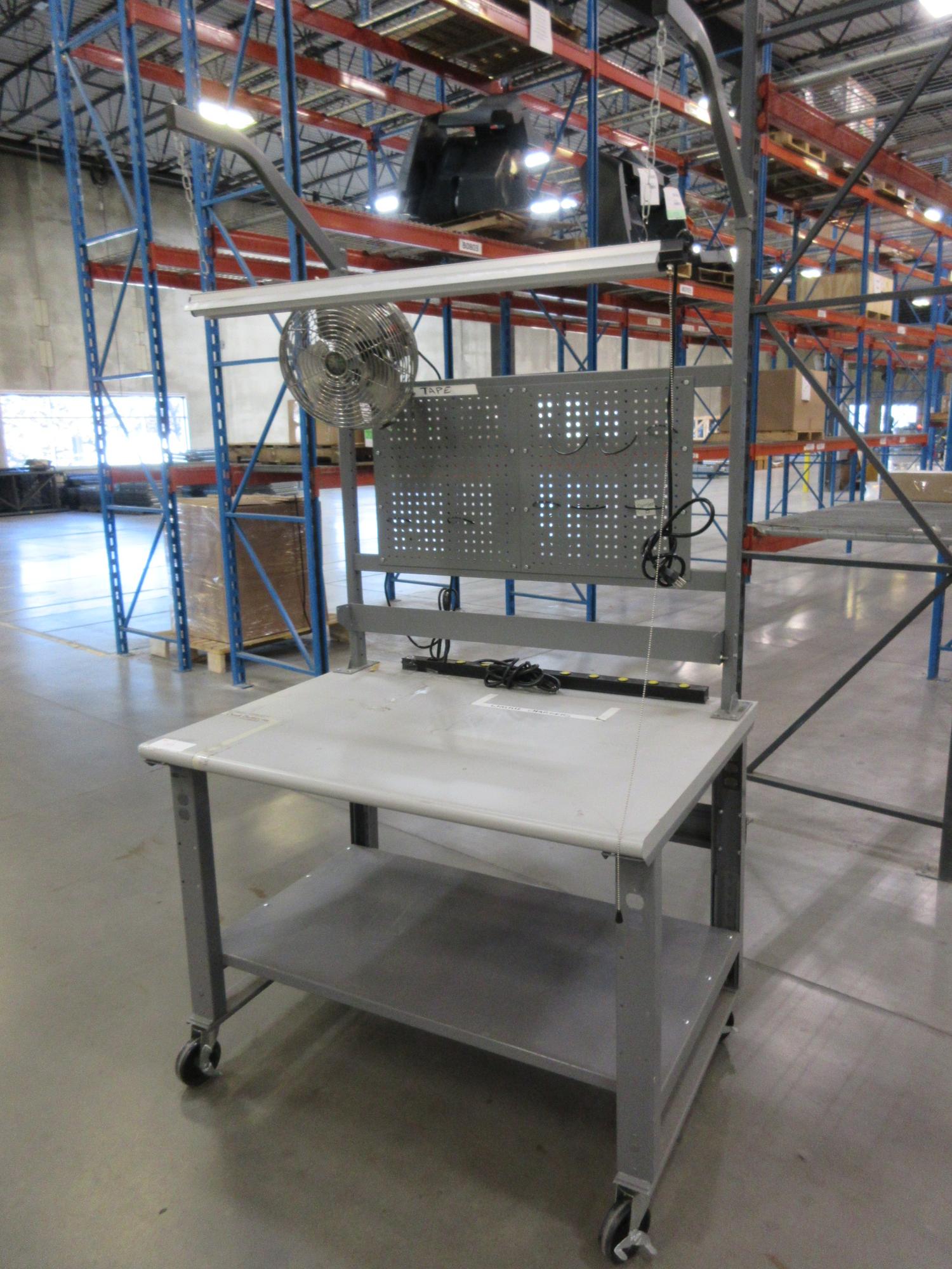 Lot 193: Work Bench, Heavy Duty Metal with Work Light and Power Strip, Portable