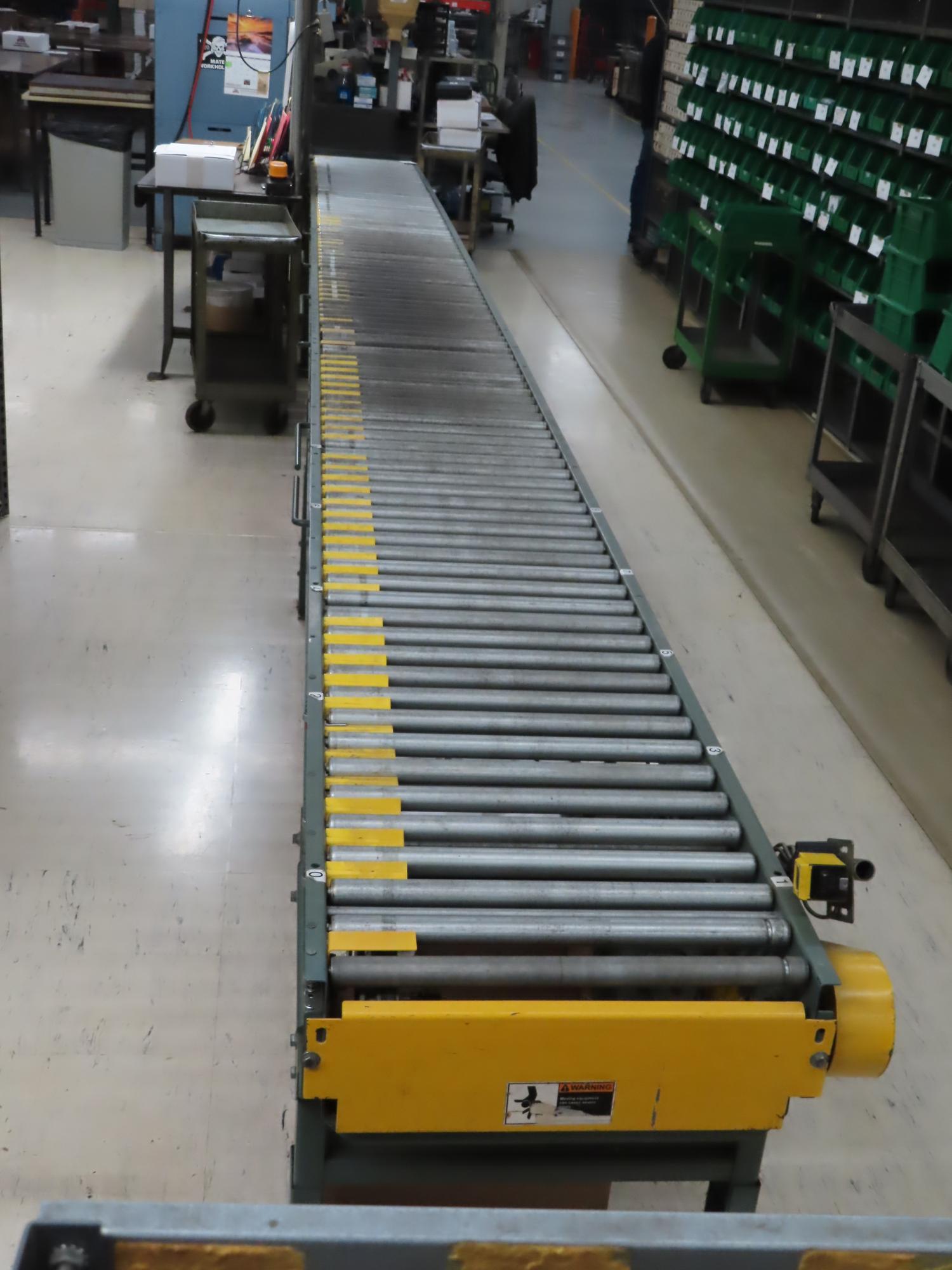 Lot 190: Hytrol 22" x 25' Powered Roller Conveyor System with Foot Pedal, (2) 10' Sections and (1) 5' Section