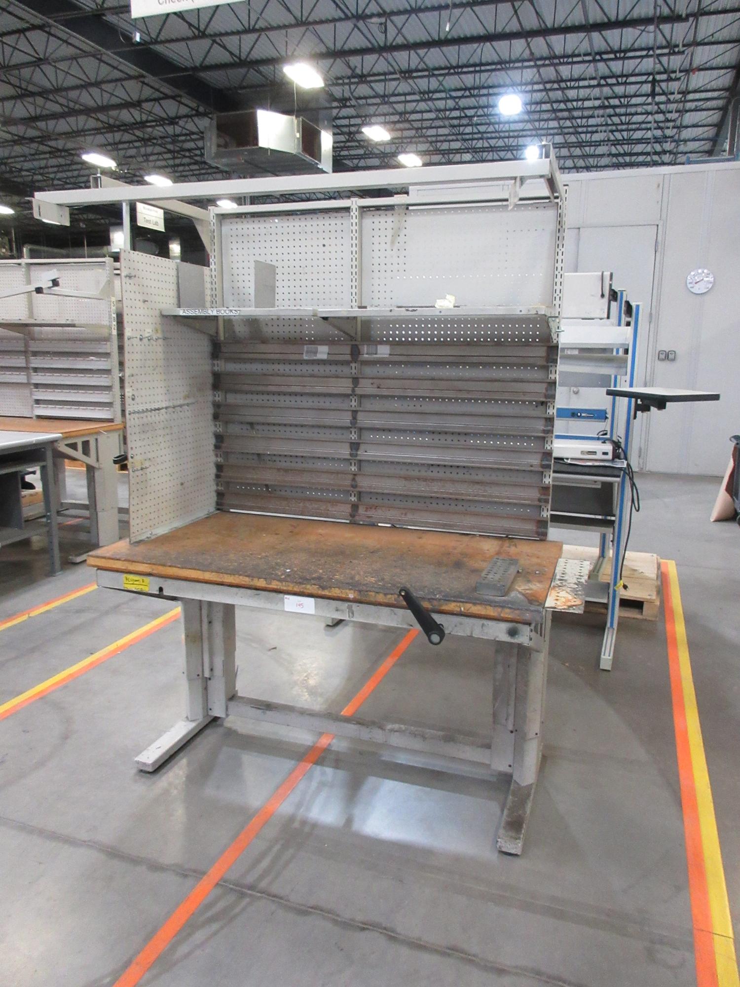 Lot 195: Work Bench, Heavy Duty Metal, Adjustable with Wood Top and Adjustable Shelving