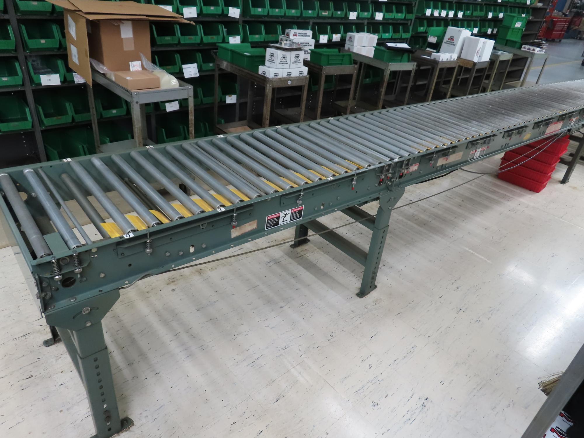Lot 200: Hytrol 22" x 25' Powered Roller Conveyor System with Foot Pedal, (2) 10' Sections and (1) 5' Section
