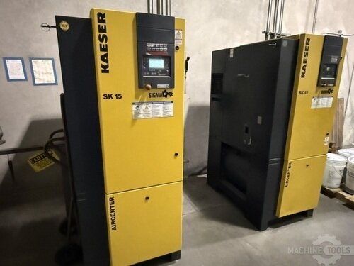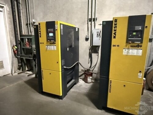 (2) 15HP Kaeser SK-15 Air Center Rotary Screw Air Compressor with integrated air dryer, 2021 & 2014