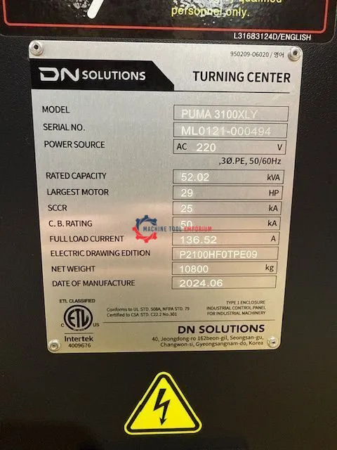 SUPER CLEAN LOW HOUR MAHCINE, like New, 1,200 Cutting Hours, Y-Axis, Live Milling, Extra Long Bed (83.7"), Tailstock, Hydraulic Steady Rest, Renishaw Probe, ChipBlaster. This 2024 Doosan Puma 3100XLY CNC multi-axis lathe also includes tool presetter,and chip conveyor. Like new 2023 Doosan Puma 3100LY also for sale in same facility.