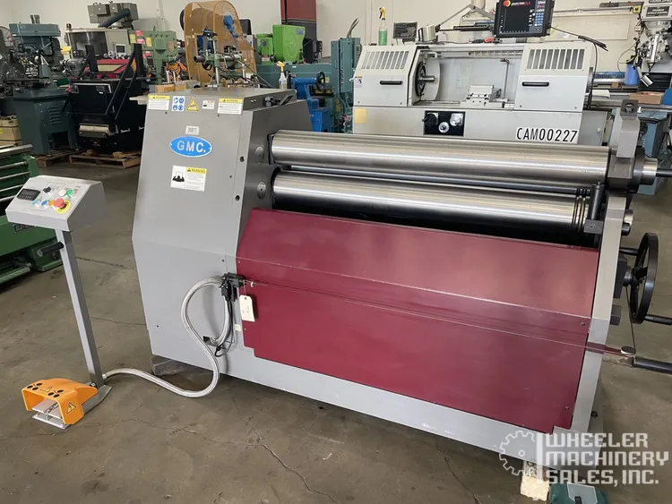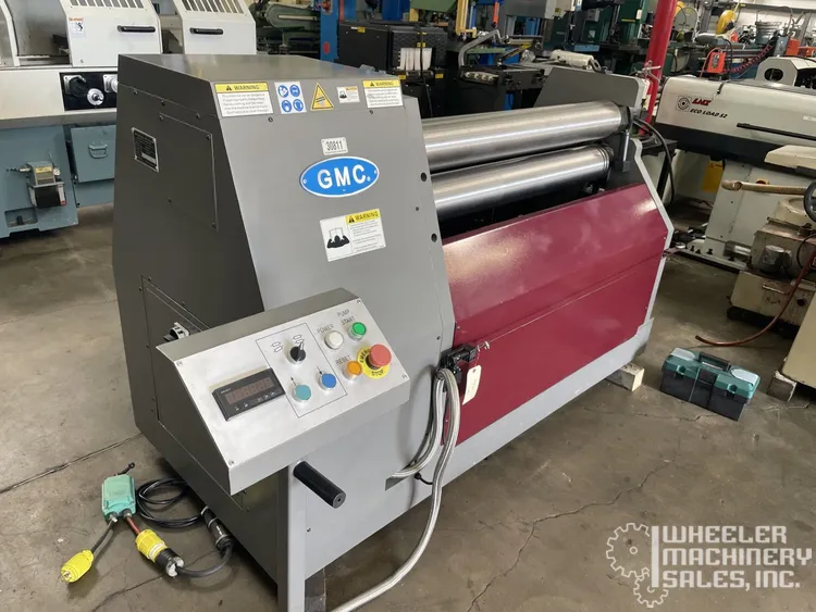 GMC HBR-0425 Hydraulic Plate Roll, manufactured by GMC. This used model is ideal for plate bending with initial and double pinch capabilities. Suitable for various industrial applications.