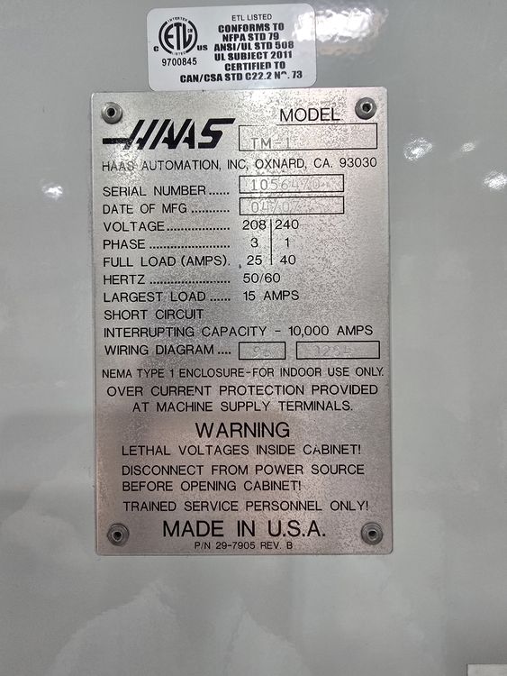 Haas CNC Control, 10-Position ATC, 4th Axis Ready