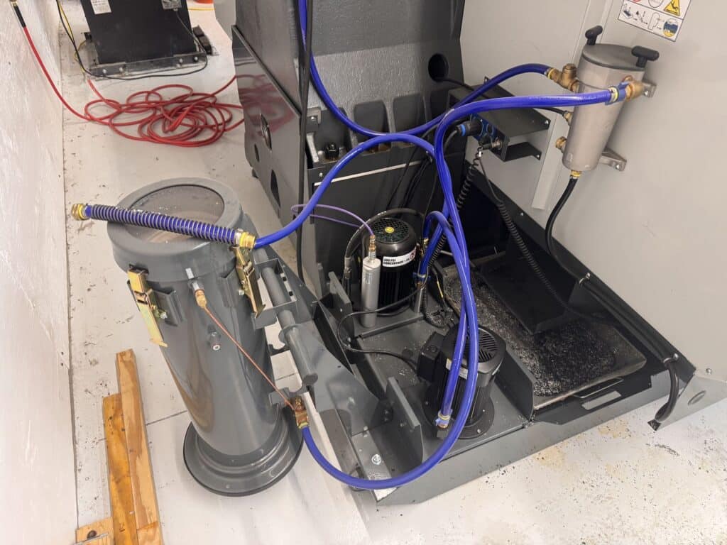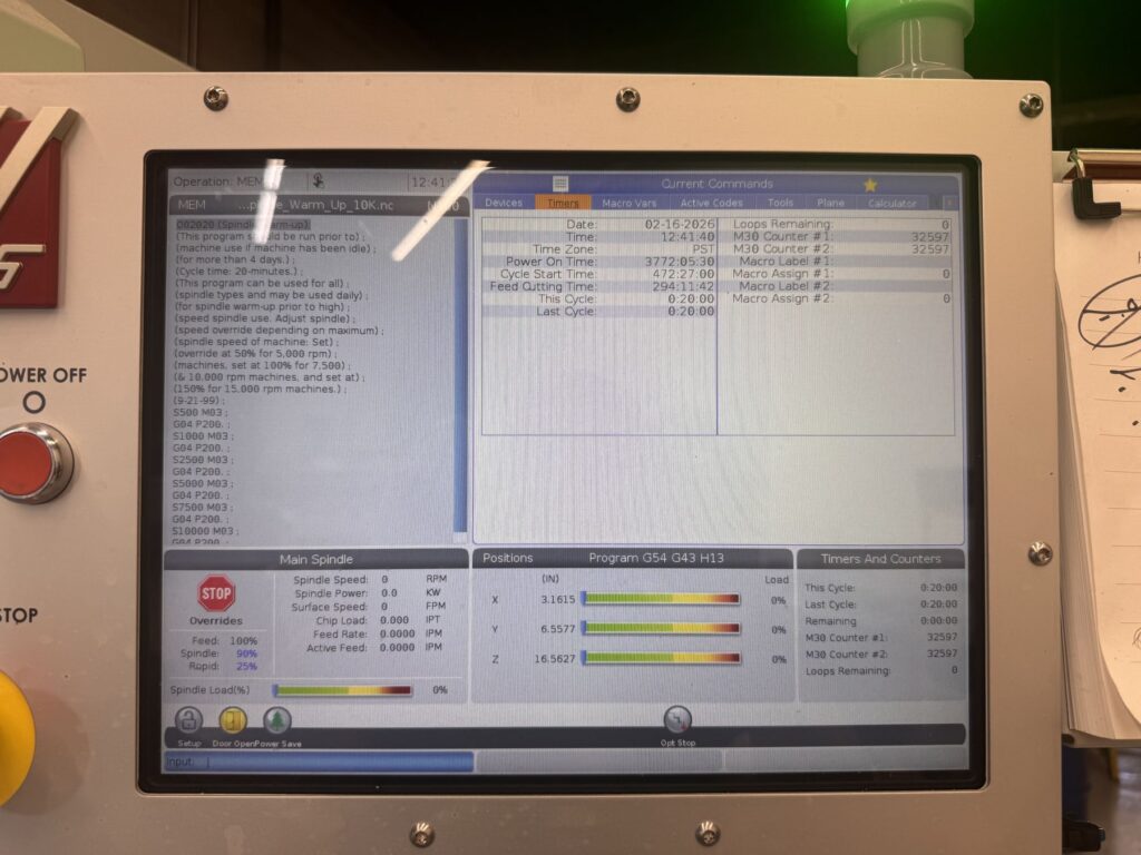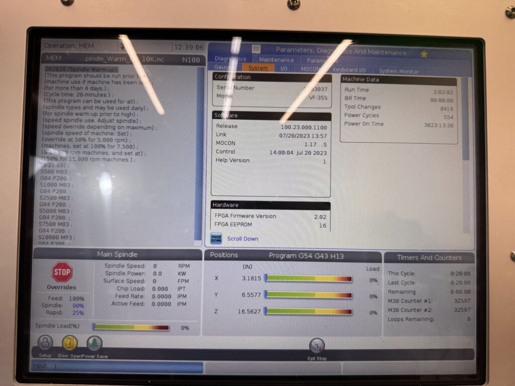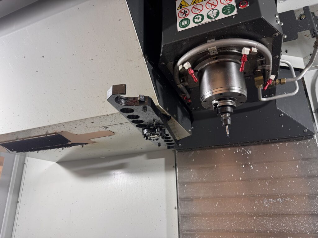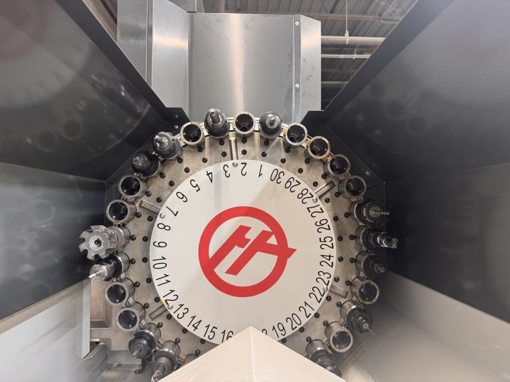 2,000 rpm inline direct-drive spindle, 40-taper (CT40), 30+1 side-mount tool changer, equipped with 4th Axis Drive Wiring, 5th Axis Drive and Wiring for brushless rotary tables, TRT210 210mm Trunnion Rotary Table, Through Spindle Coolant (TSC) 300 psi / 21 bar, Auger-Style Chip Conveyor, High-Speed Machining with Look-Ahead (HSM), Wireless Intuitive Probing System (Renishaw WIPS-R), Probe Riser Block (PRB-EC3), Auxiliary Coolant Filter System 25-micron (ACF), Through-Tool Air Blast (TAB), Chip Strainer / Chip Tray Filter Kit
