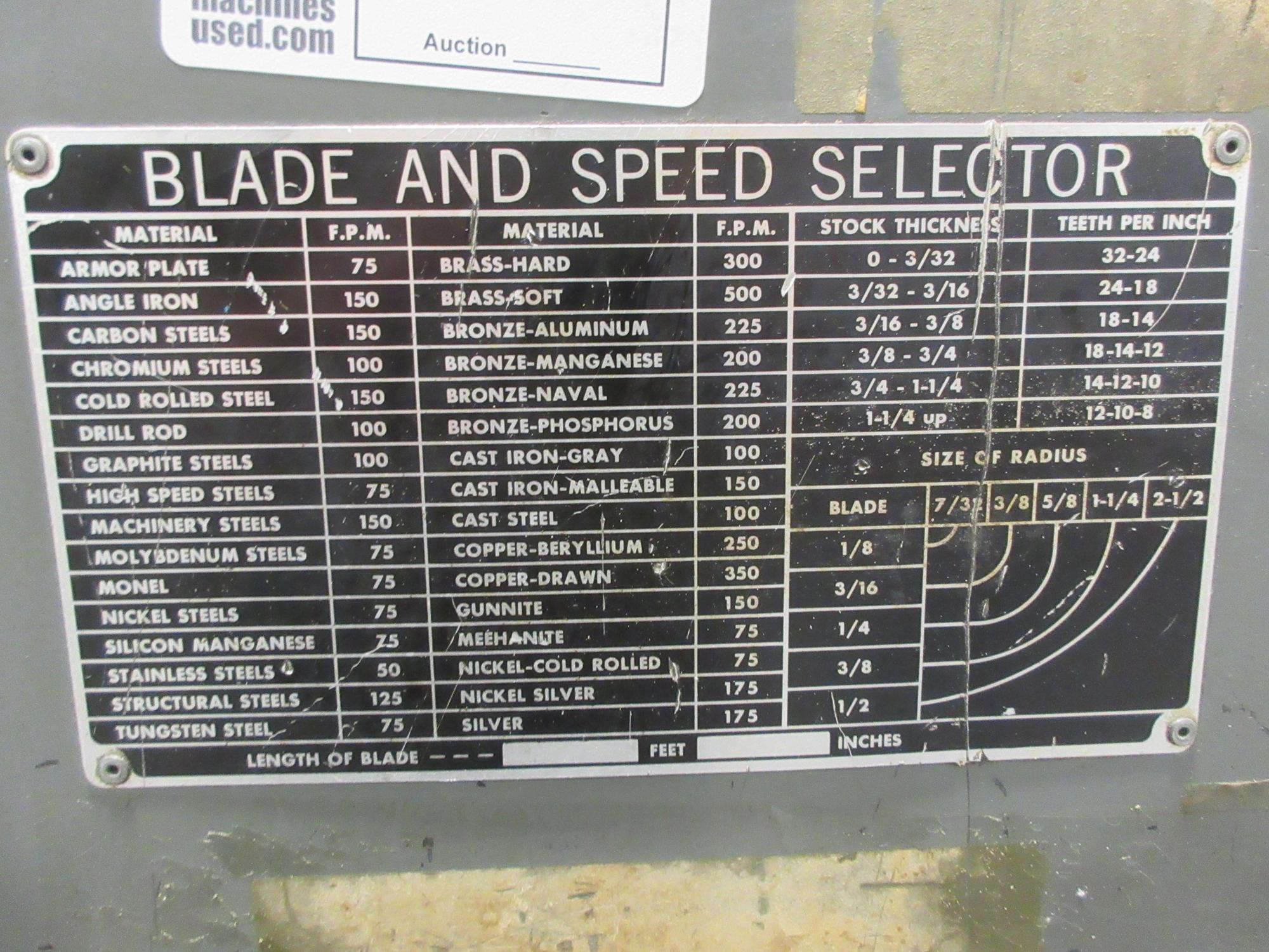 Equipped With: Gravity Blade Feed, Vise and Clamp, Extra Blade, 3/4 HP Motor