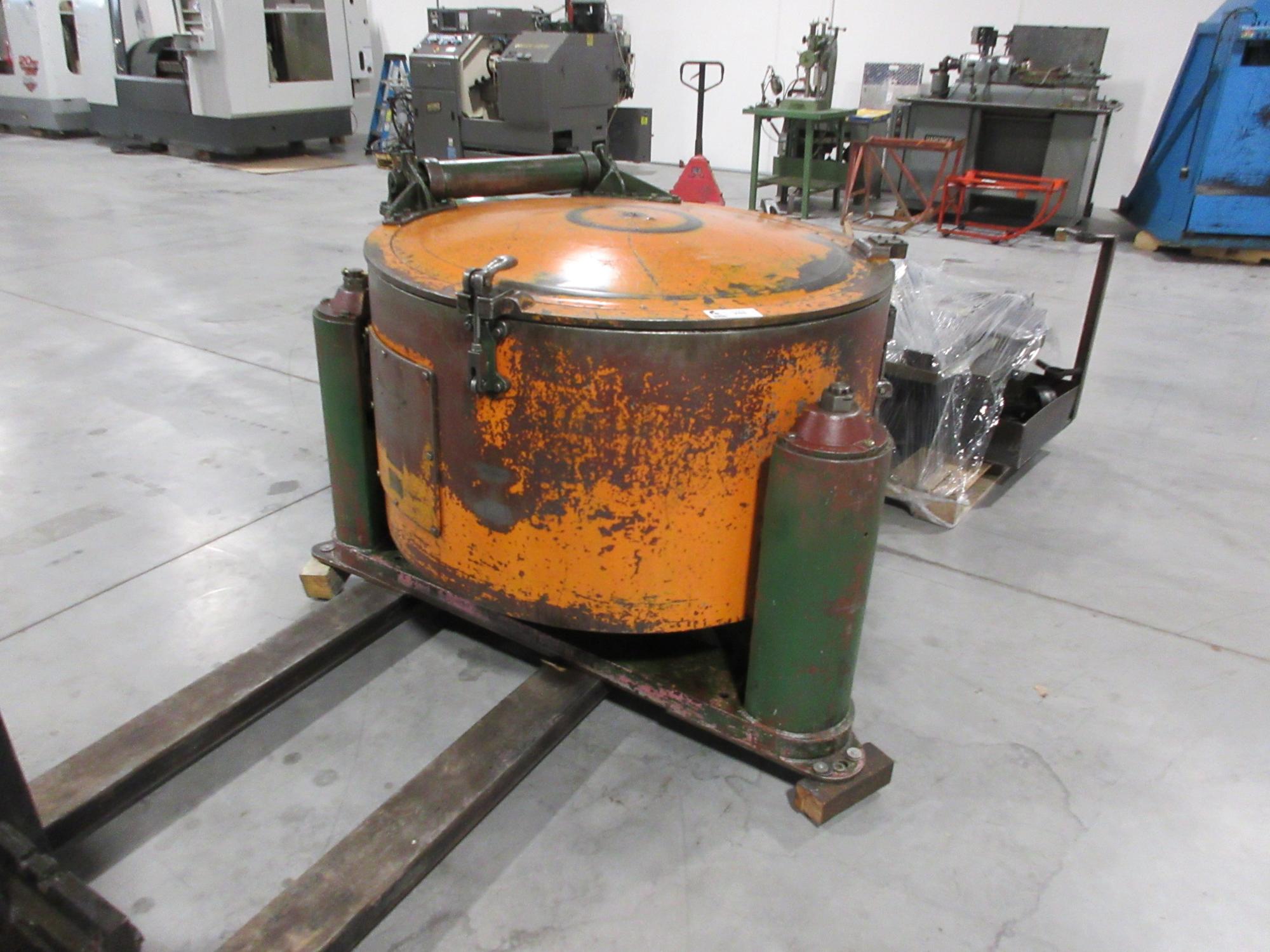 Lot 255: Tolhurst 48″ x 24″ Basket Centrifuge Chip Spinner, with Catch Pan and Accessories