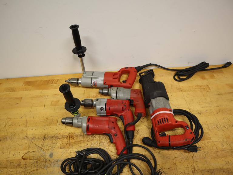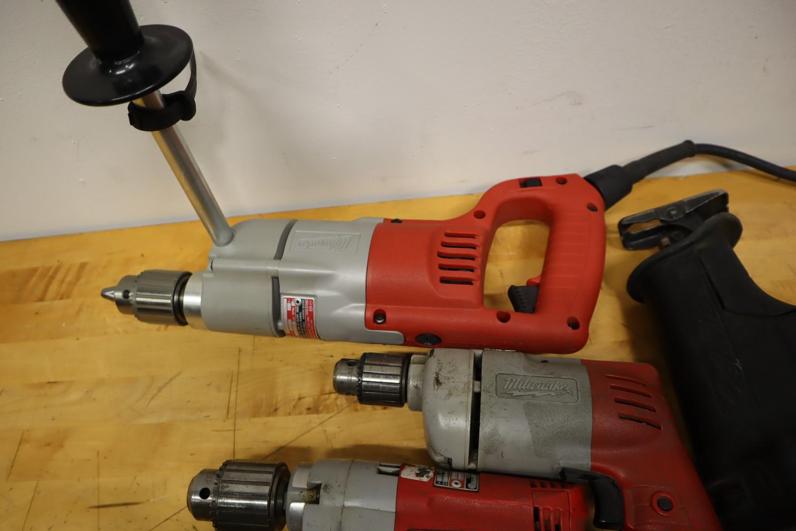 Lot 343: Milwaukee Heavy Duty Corded Drills, Hammer Drills, Sawzall