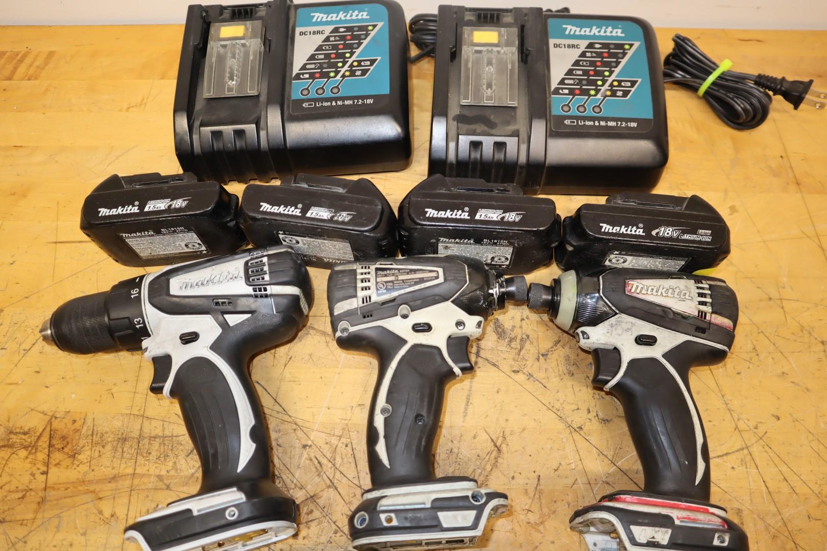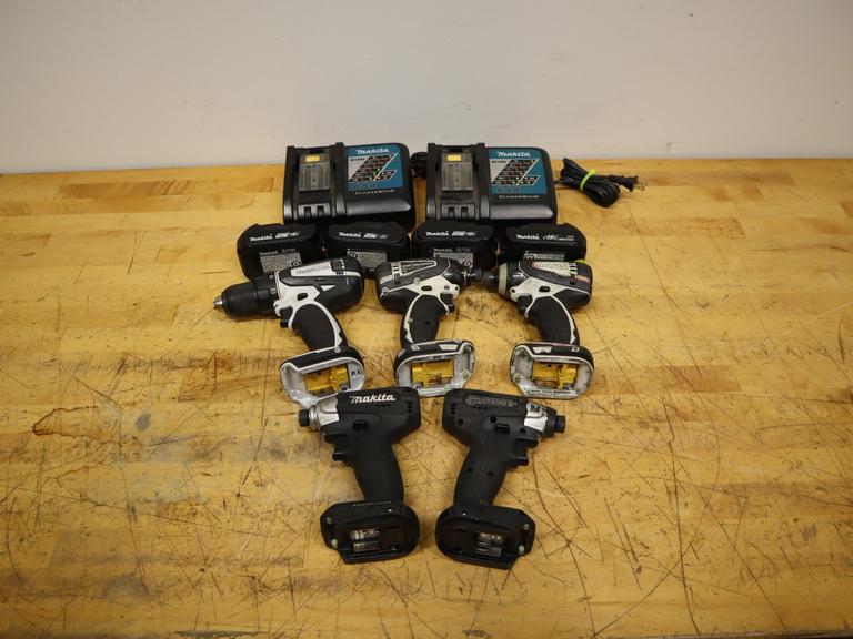 Lot 348: Makita 18V LXT Impact Driver & Drill 6-Tool Lot | (2) XDT18 Sub-Compact & (2) XDT04 Models & LXFD01 Drill w/ Batteries & Chargers