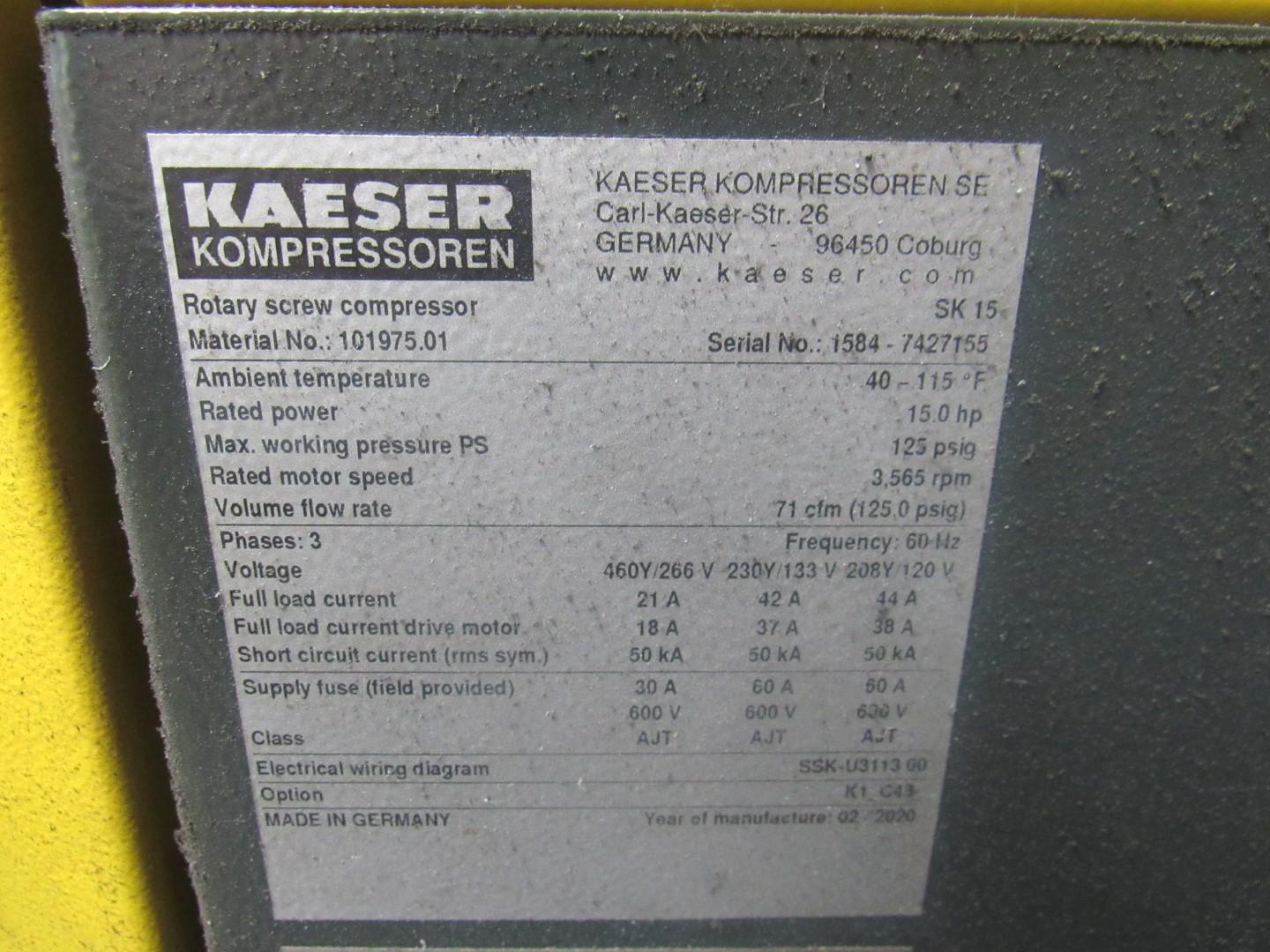 Kaeser SK15 Rotary Screw Air Compressor - W/ Sigma Energy Saver, **Buyer Responsible for Proper Disconnection and Removal.