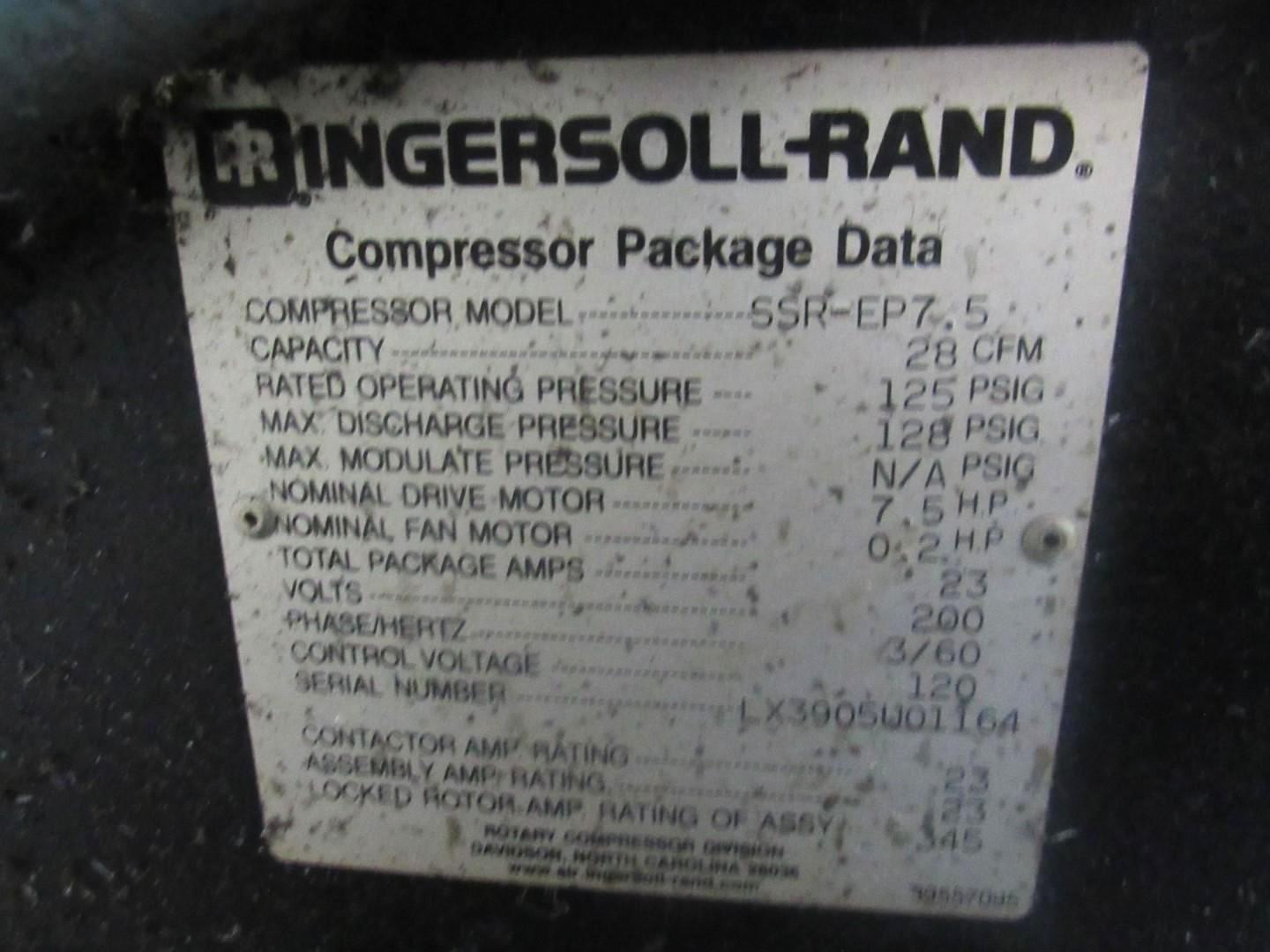 Ingersoll Rotary Screw Air Compressor - m/n: SSR- EB7.5, 28 CFM, 125 ESIG, 200V, **Buyer Responsible for Proper Disconnection and Removal.