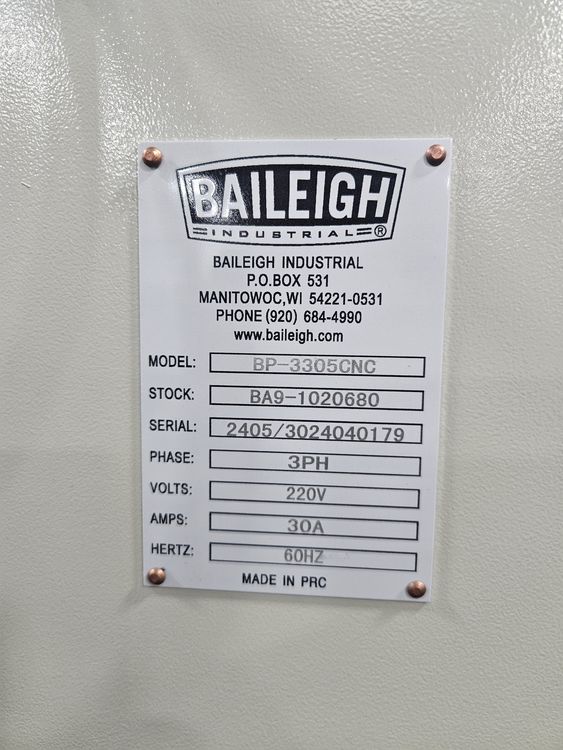 Baileigh BP-3305CNC 33 Ton CNC Press Brake (2024)