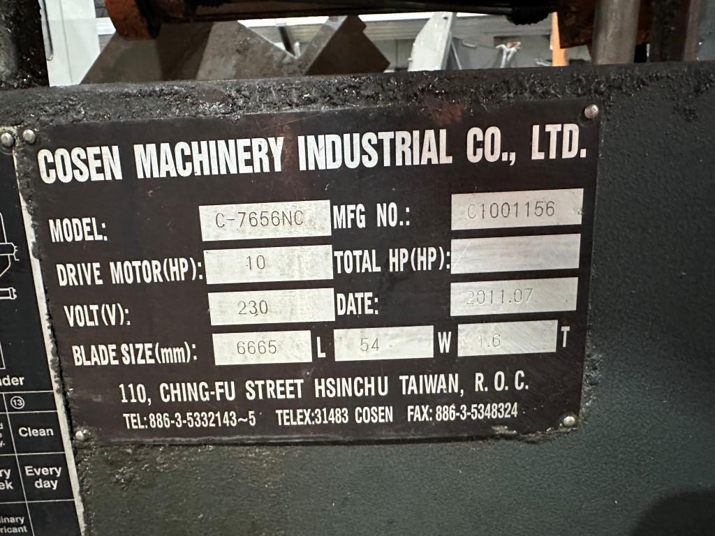 22” x 30” Cosen NC Twin Post Fully Automatic Model C-7656NC Horizontal Band Saw