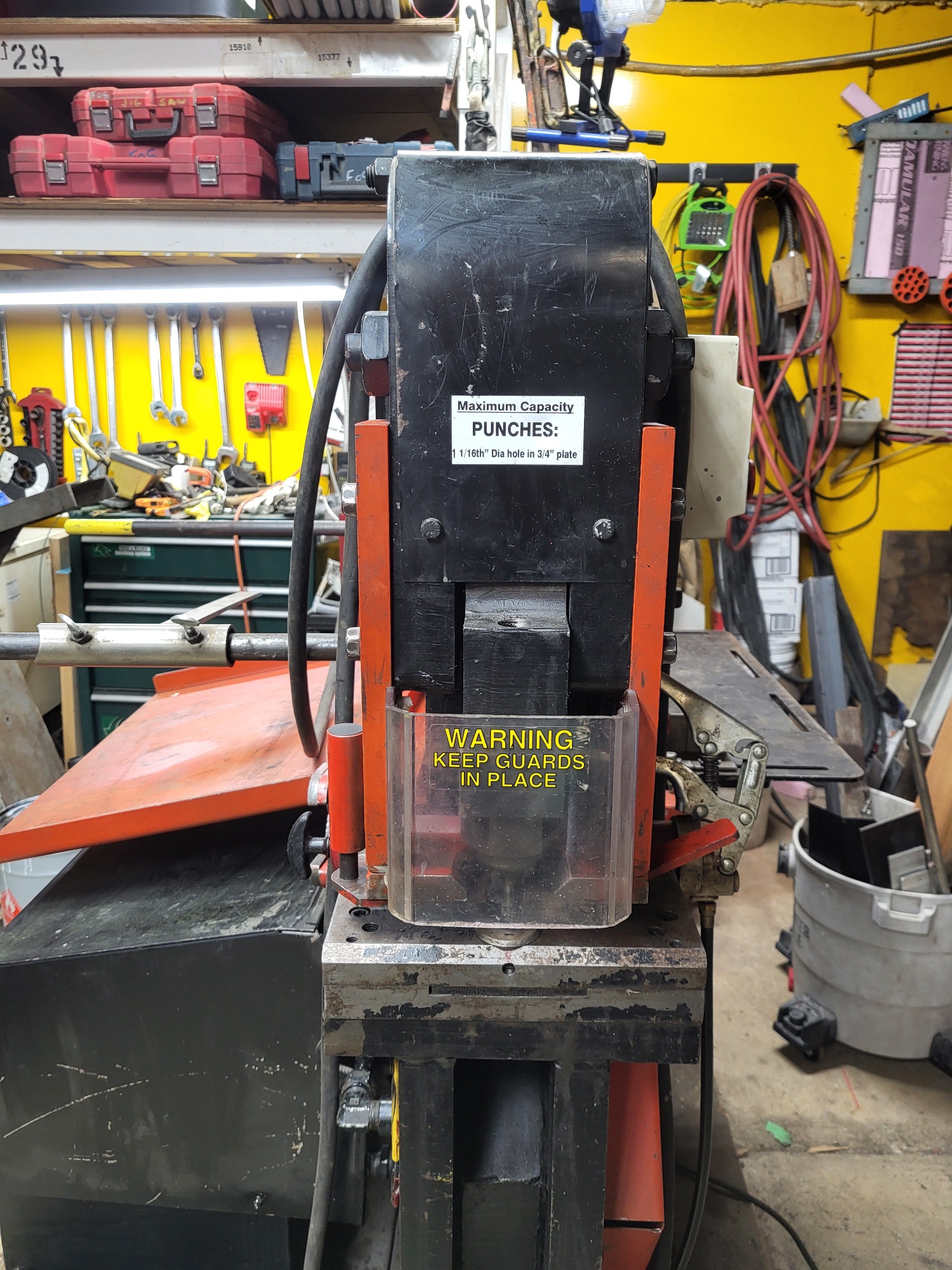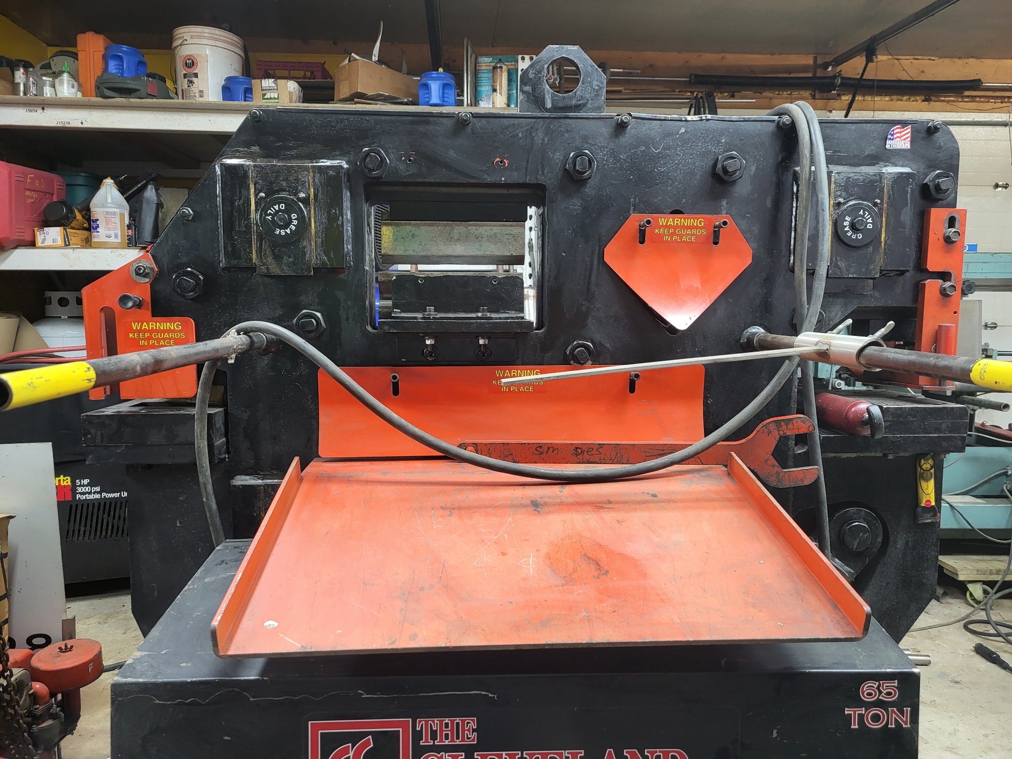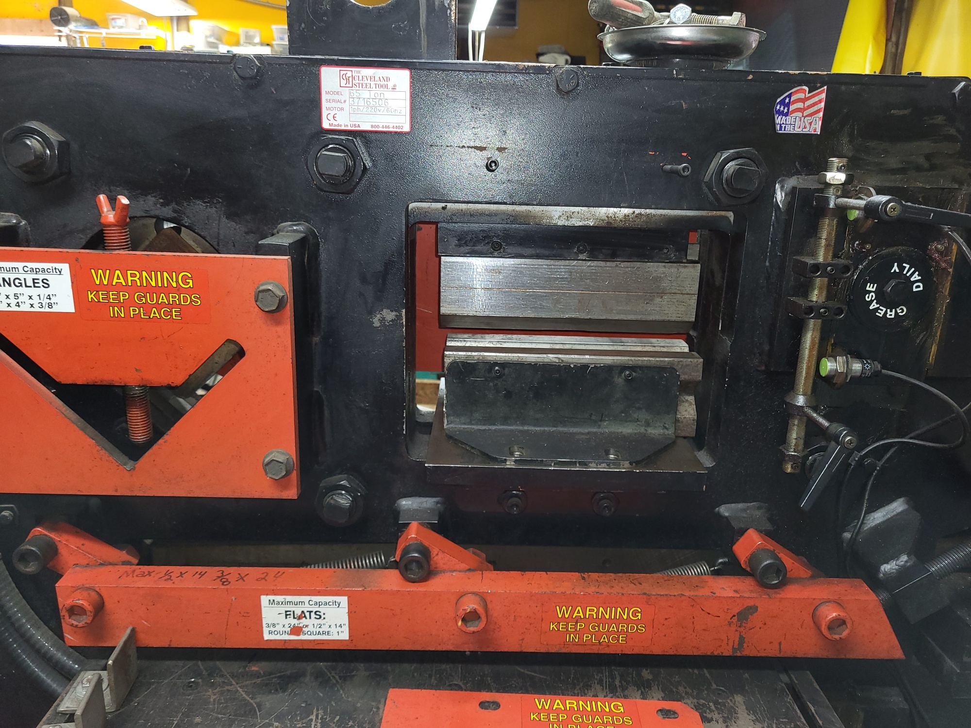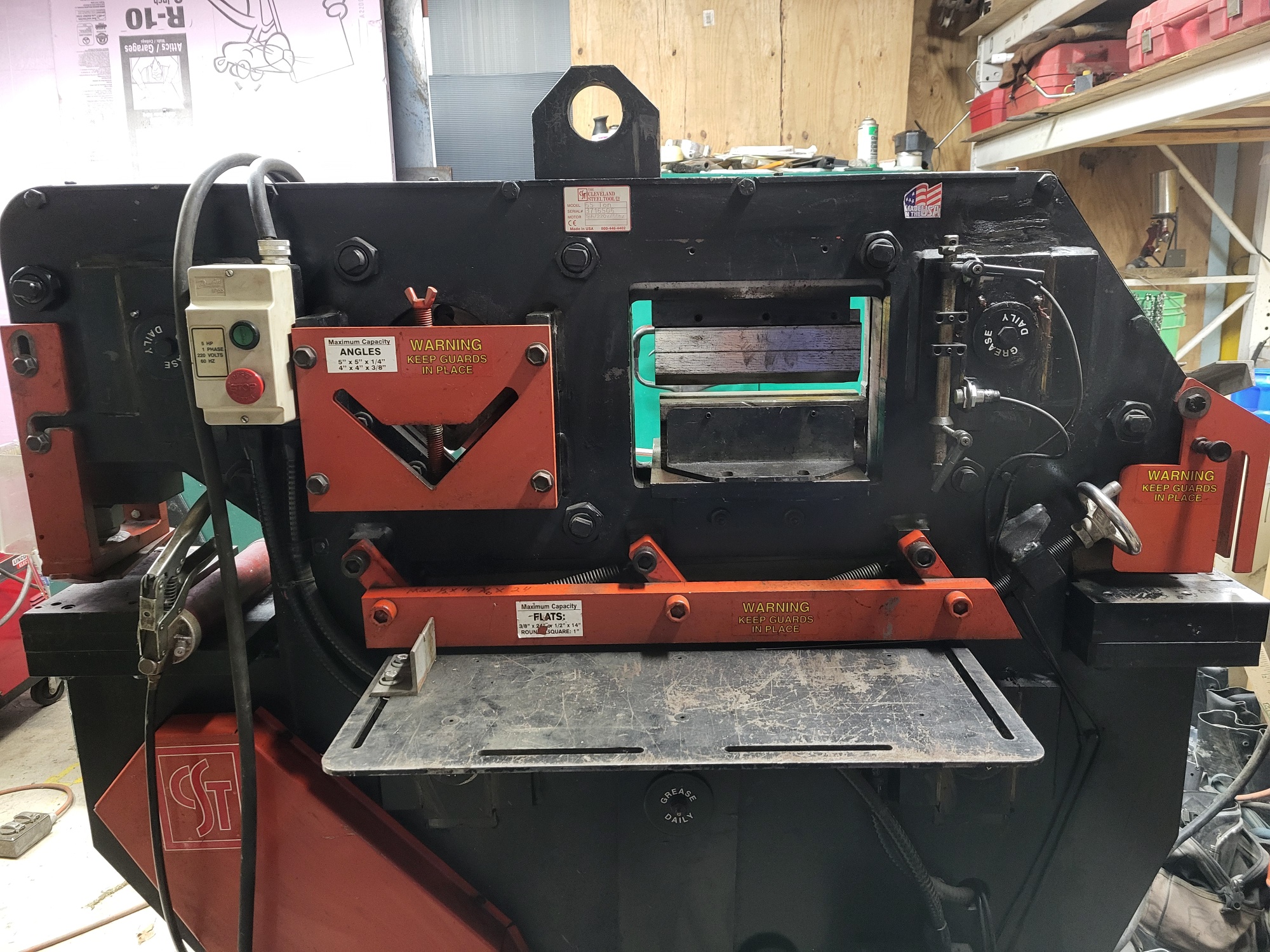 CST (Edwards) 65 Ton Ser # 3716506 220v 1 Ph 5 hp Punch Station, 1 1/16 in 3/4 plate Notch Station,2 1/2" X 6" Pipe Notch, Bar Shear 3/8"X 24" 1/2" X 14" Angle Shear 4" X4" X 3/8" 5"X 5" X 1/4" Brake station w electric Stroke Control 28 sets of dies oversized table Rod shear attachment