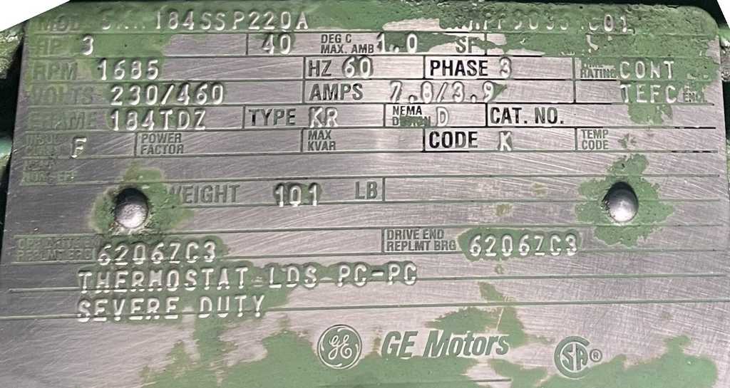 -3 HP AC Motor, 1685 RPM, 230/460 V