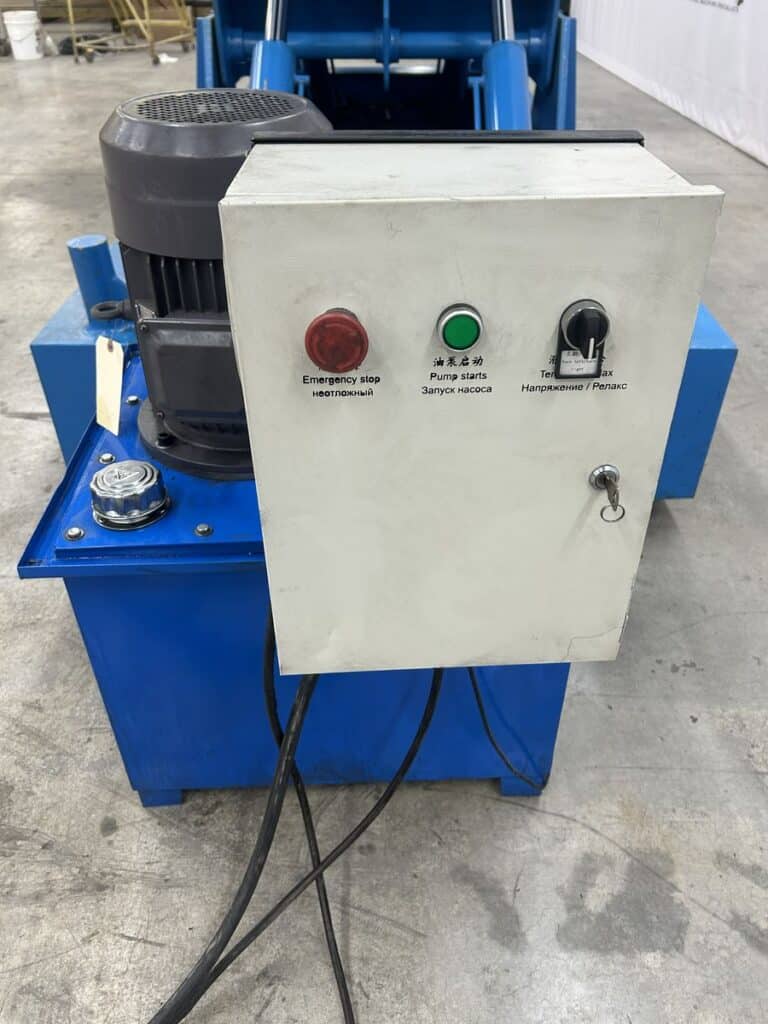 Self-Contained Hydraulic Power Unit, 5.5 KW (7.5 HP) 3-Phase Induction Motor, V-Cradle Platform, Dual Hydraulic Cylinders, Control Panel with Emergency Stop