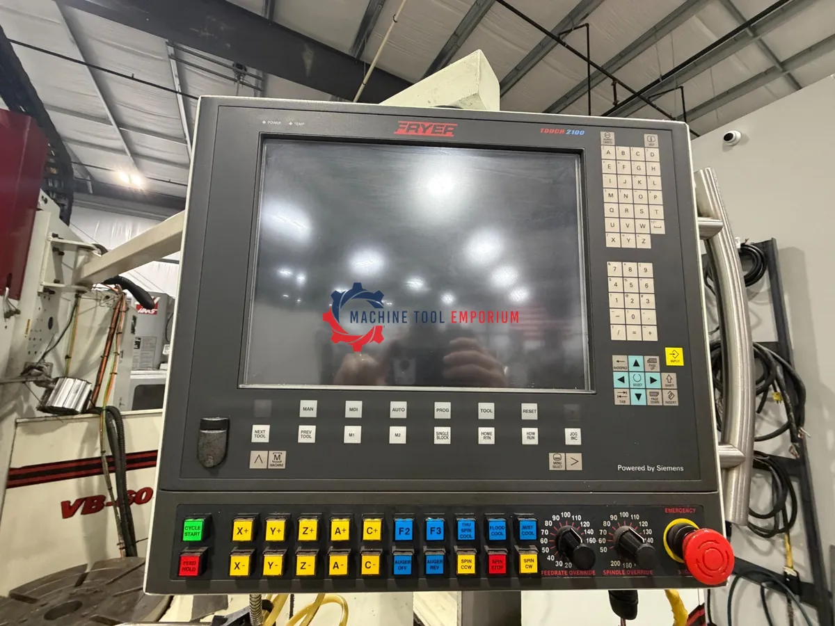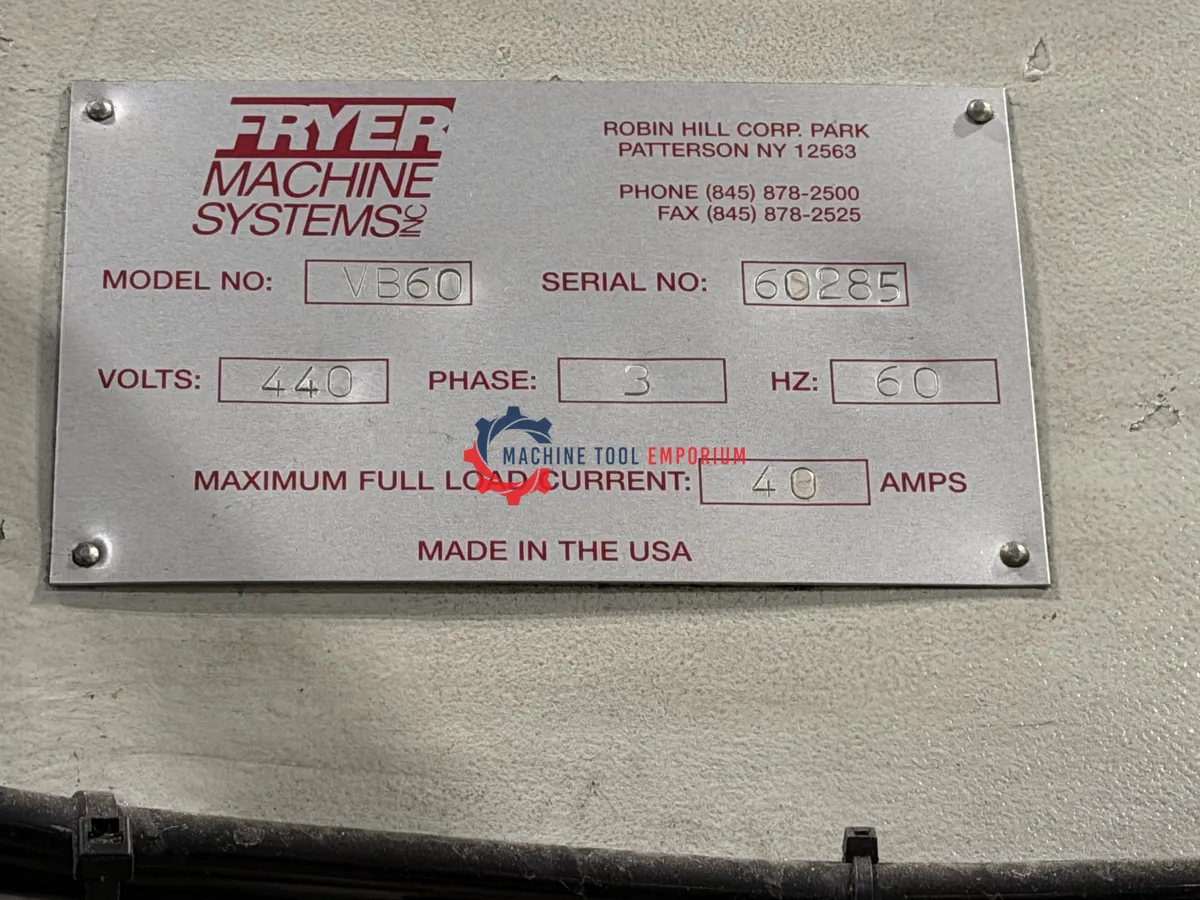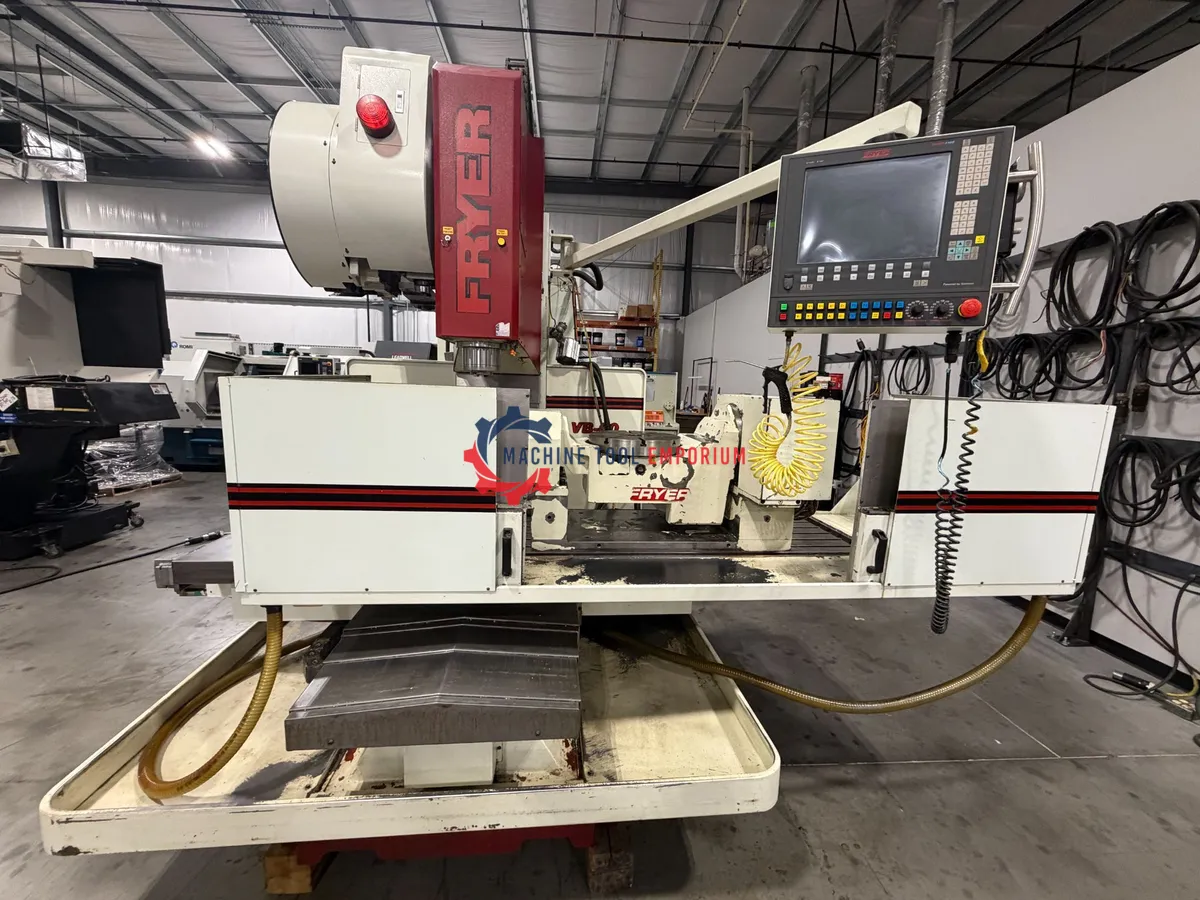 Good condition. Equipped with Fryer/Siemens control, 60" x 30" x 28" travels, CAT 40 spindle, 10,000 RPM, 20-station ATC, and 25 HP spindle motor. Heavy-duty bed mill design with large work envelope, ideal for toolroom, prototype, and production applications. Under power and available for inspection.