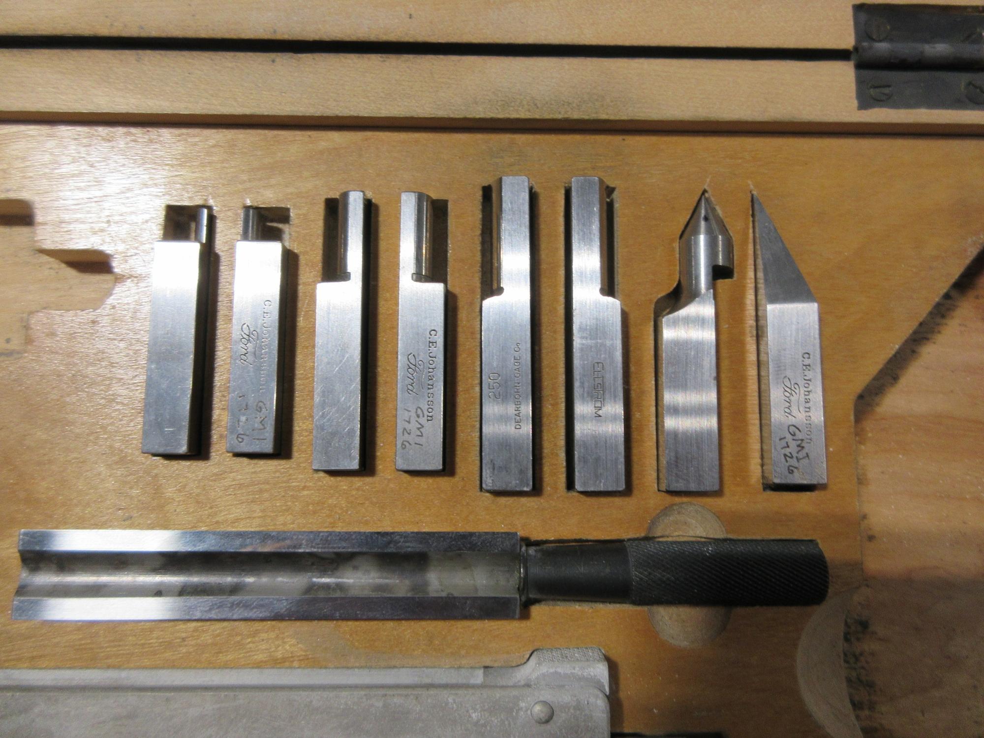 Lot 295: C.E. Johanssson Ford Guage Block Stacking Set, With Base, Specialty Blocks and Stacking Vises
