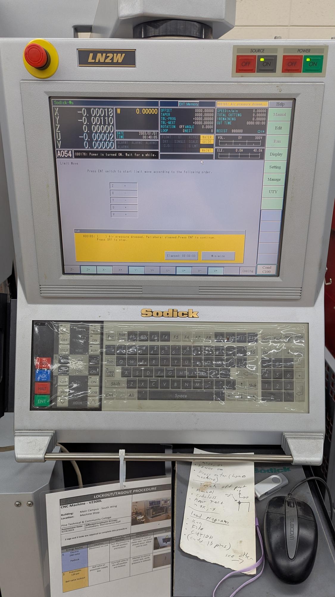 Specs:Control: Sodick LN2W CNC Control and Generator