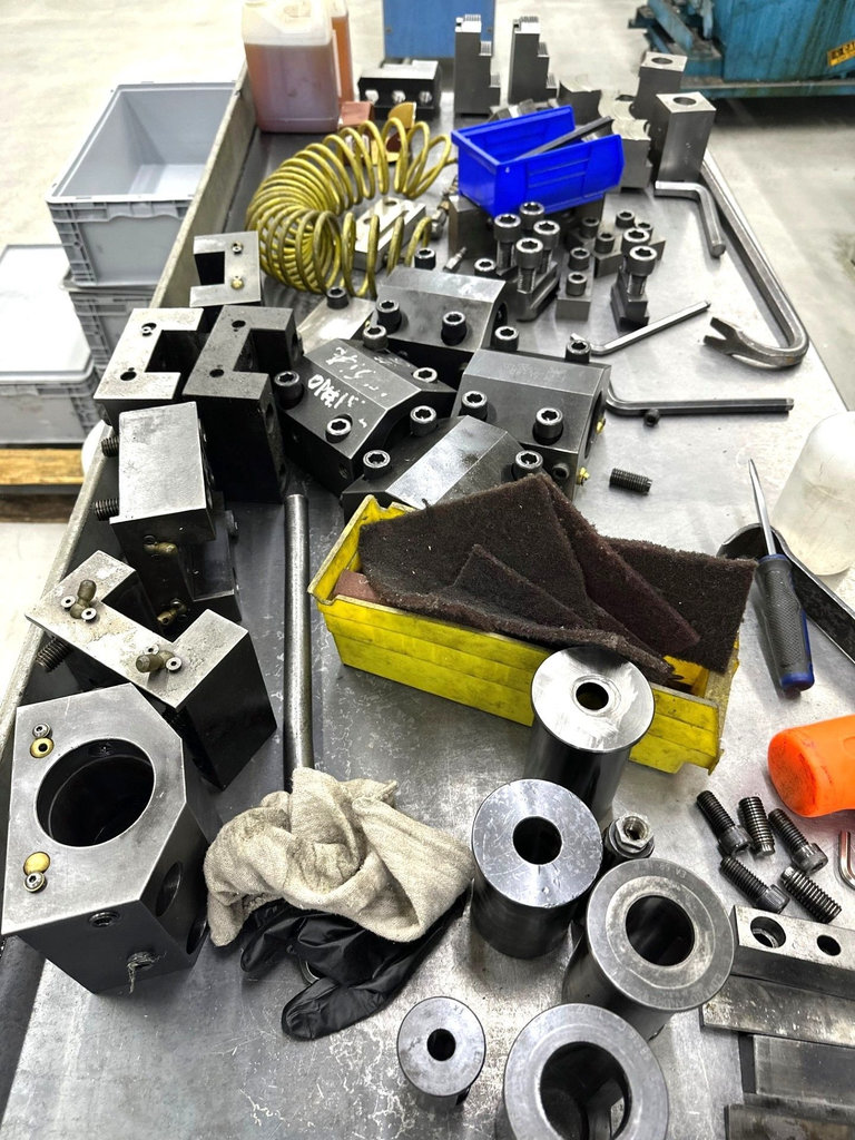 15″ 3-Jaw Hydraulic Chuck, Tool Presetter, Chip Conveyor, Tooling as Pictured Included