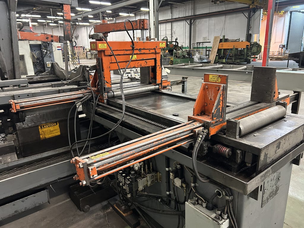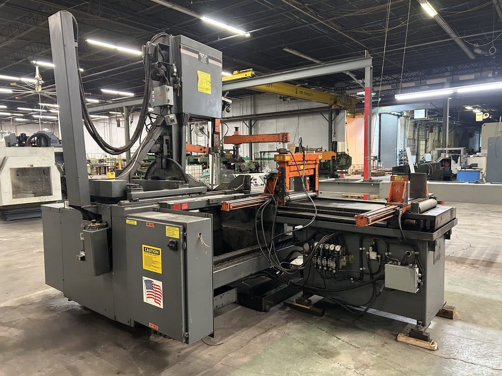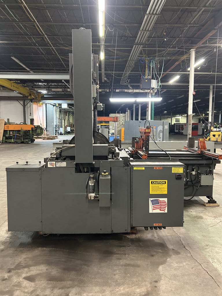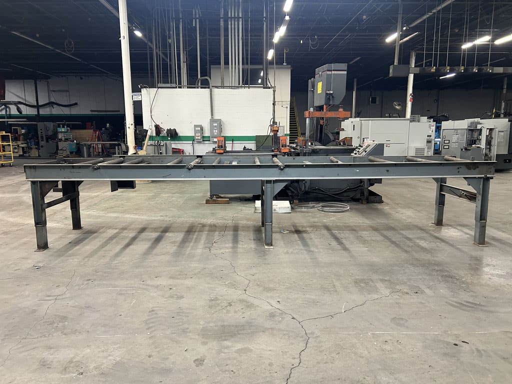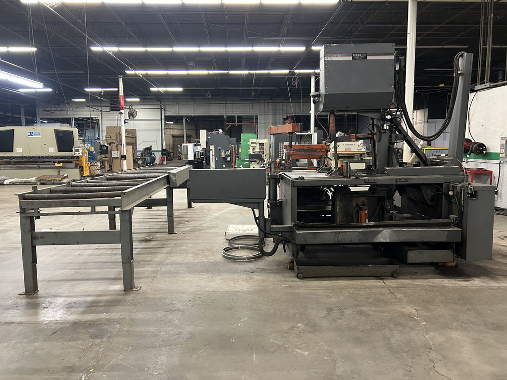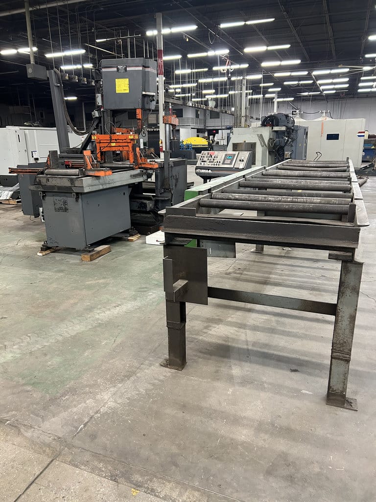 20′ Outfeed Roller Conveyor, (3) Extra Blades, Powered Blade Tension, Powered Guide Arm, Coolant System, Powered Chip Conveyor, Outfeed Table