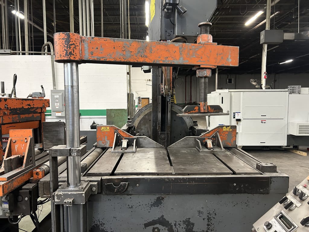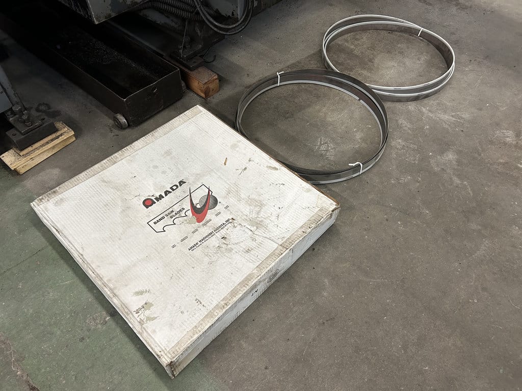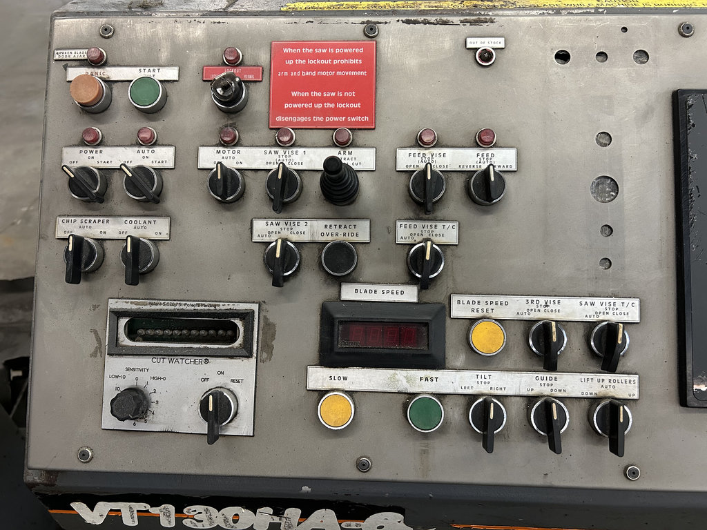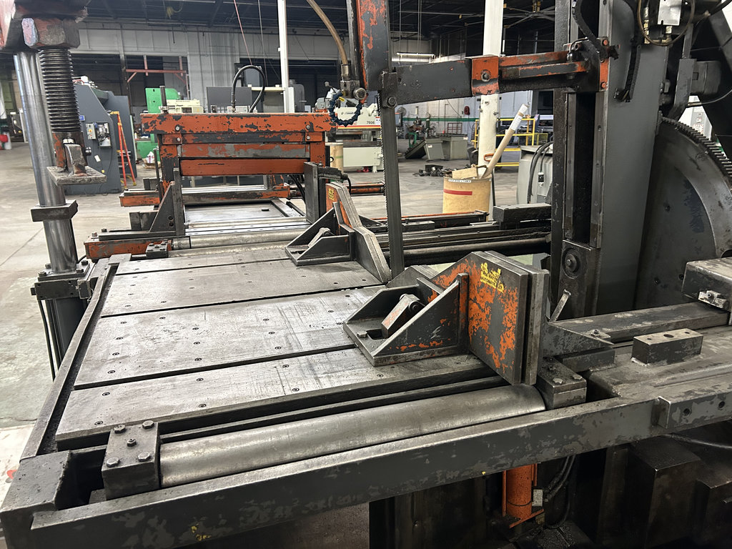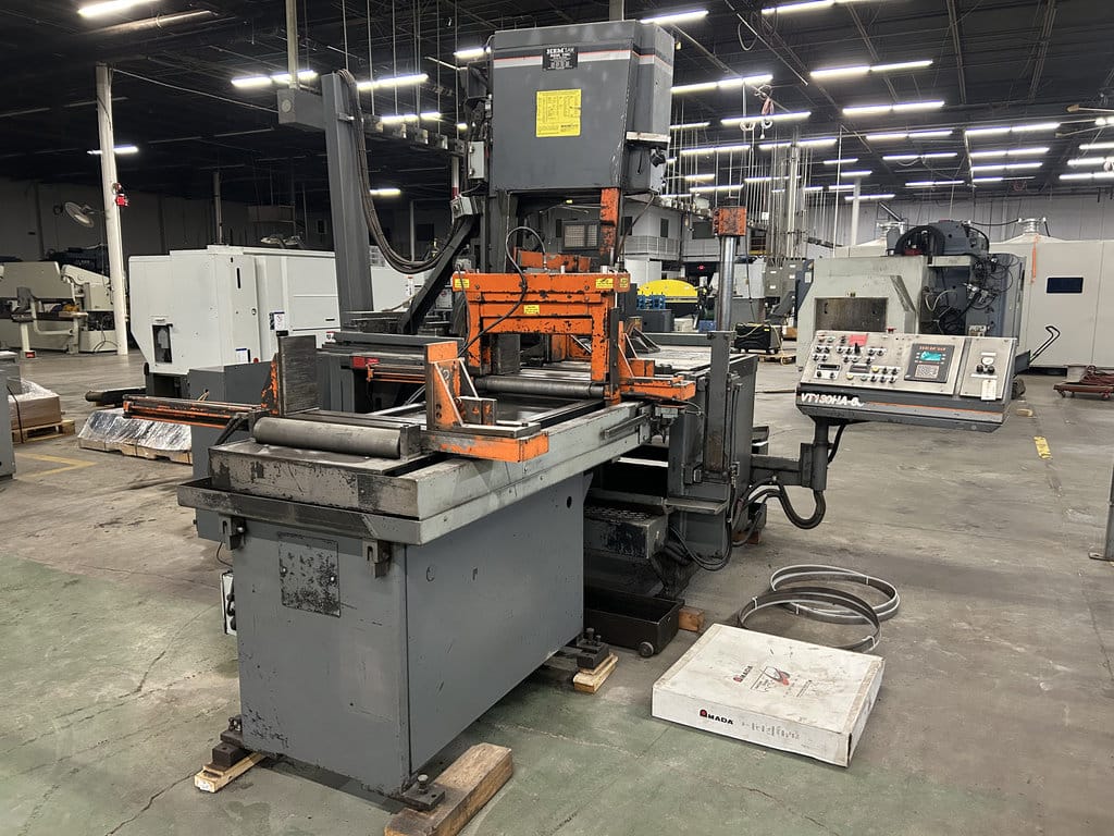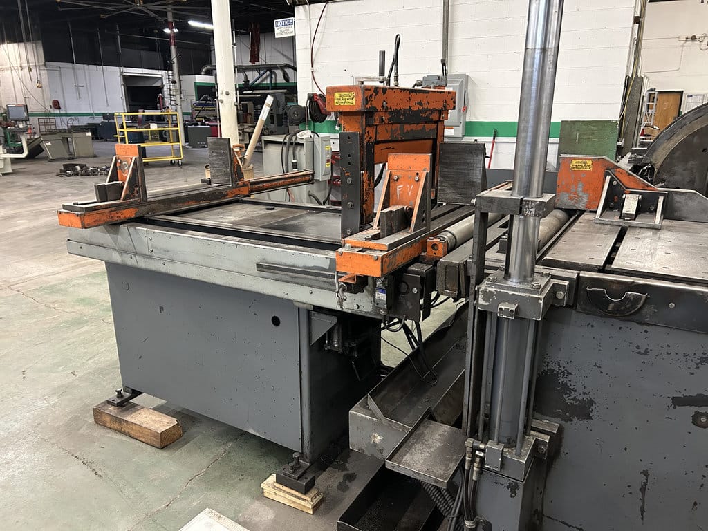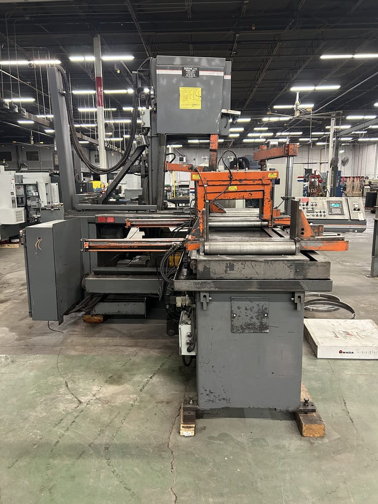 20′ Outfeed Roller Conveyor, (3) Extra Blades, Powered Blade Tension, Powered Guide Arm, Coolant System, Powered Chip Conveyor, Outfeed Table