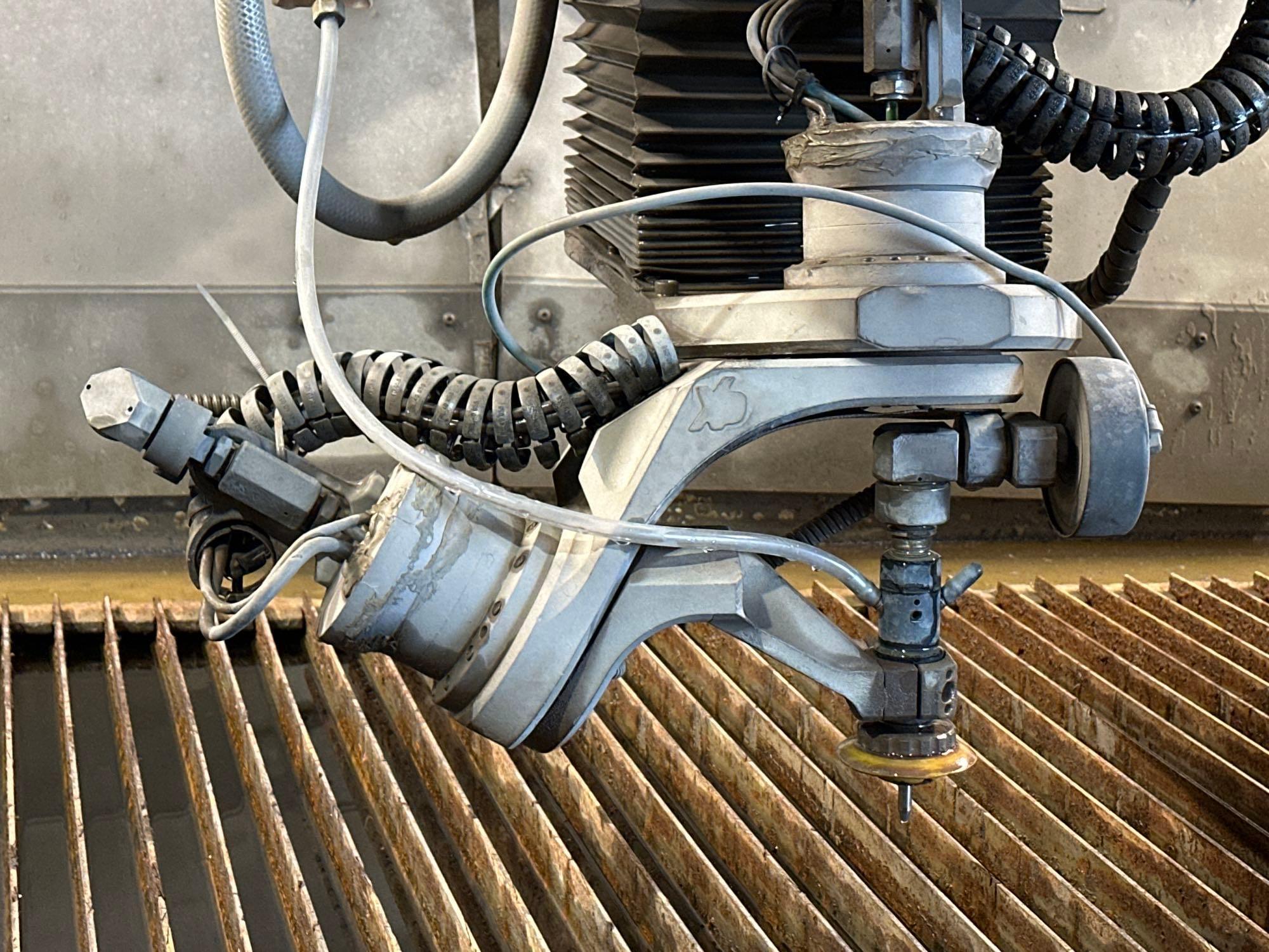 INCLUDES: 5 - Axis Head, Hyperjet 50 87,000 PSI Pump, Supply Tank with Pump & Bladder Tank to Aid Water Pressure Delivery, Water Chiller, Garnett Hopper, Spare Intensifier Pump, Cabinet with Filter Cartridge, Pallet of Blocks for Keeping Scratches out and Elevate Material.